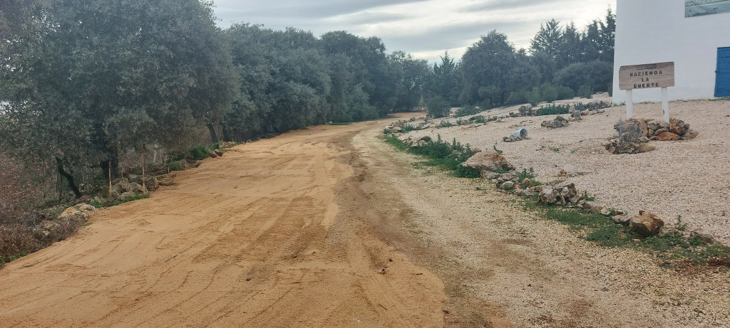 We hadden ook nog wat zahorra over en Paco vroeg waar hij dat kwijt moest. Het beste is aan de zijkant van het pad, zei ik, dus hij ging aan de slag met zijn karretje.