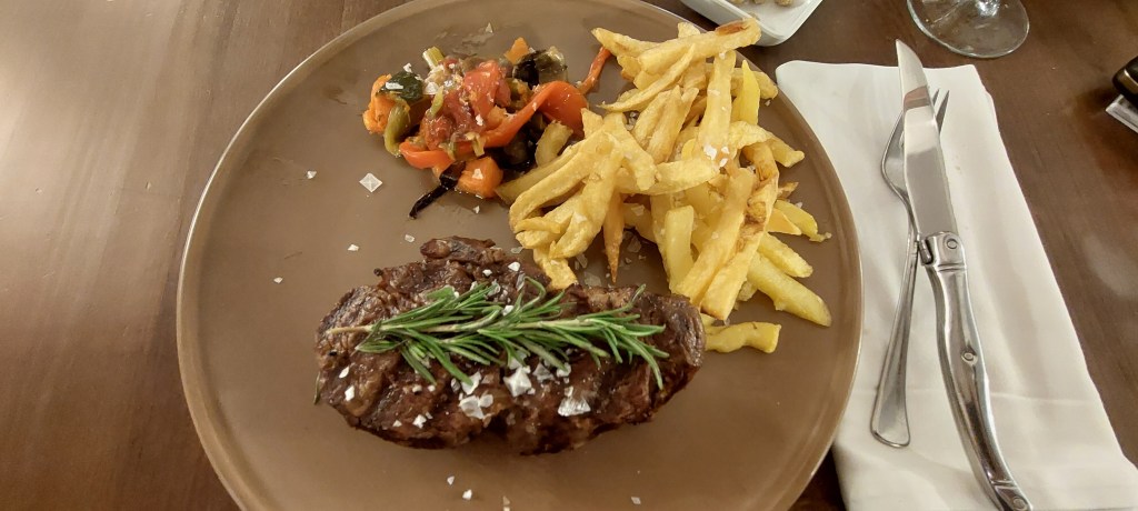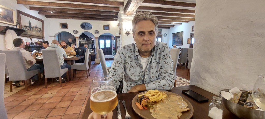 Ik kon Les overtuigen om toch mee te gaan om te lunchen want eten moet je toch. We reden naar Caserio de San Benito omdat we toch in Antequera moesten zijn voor een paar andere dingen. Helaas deze week geen goedkoop menu del dia vanwege de feestdagen deze week. Dan maar van de kaart, Les koos een kippetje met een lekker zoet rozijnensausje en ik had de solomillo de ternera.