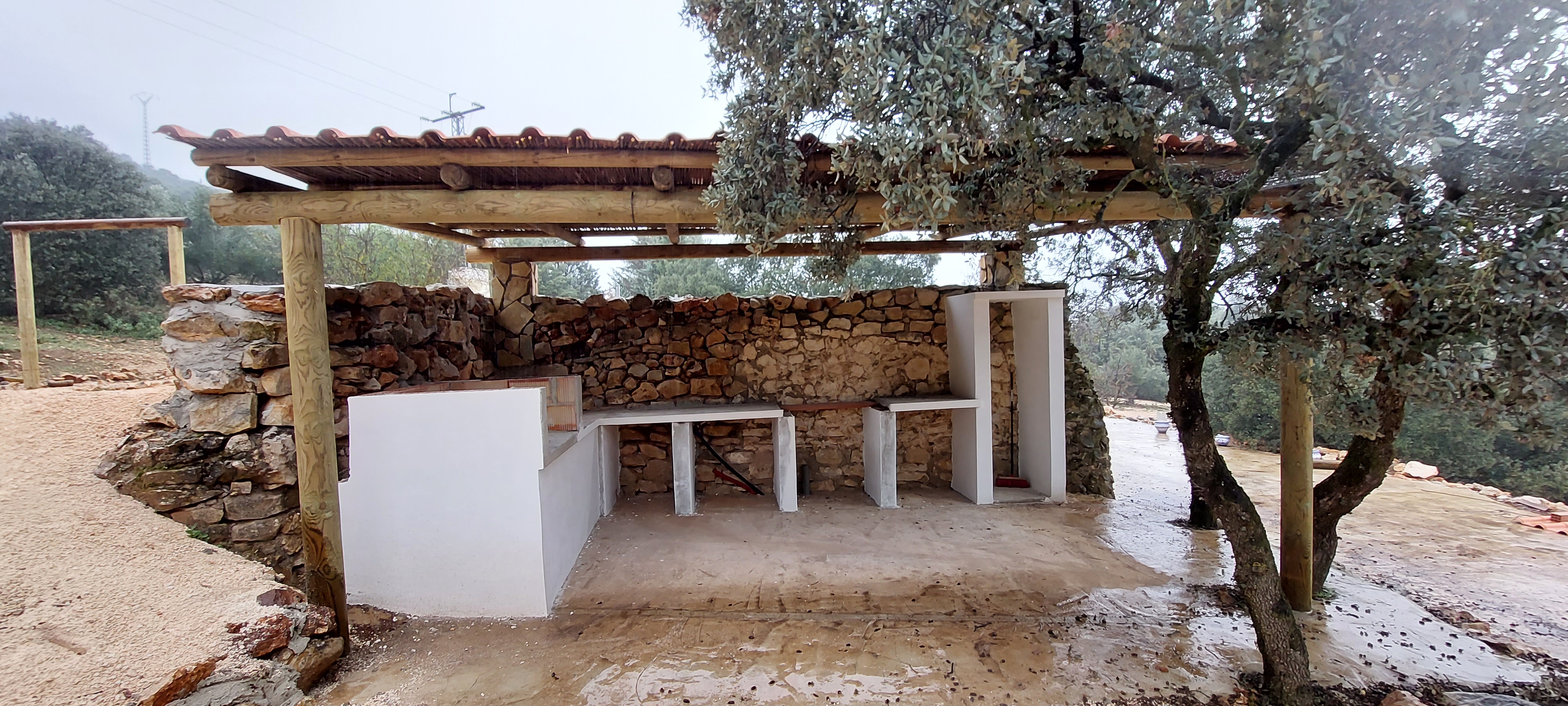 De buitenkeuken vordert. Echt mooi al hoor maar nog niet af, er moet door Les nog het één en ander gedaan worden.