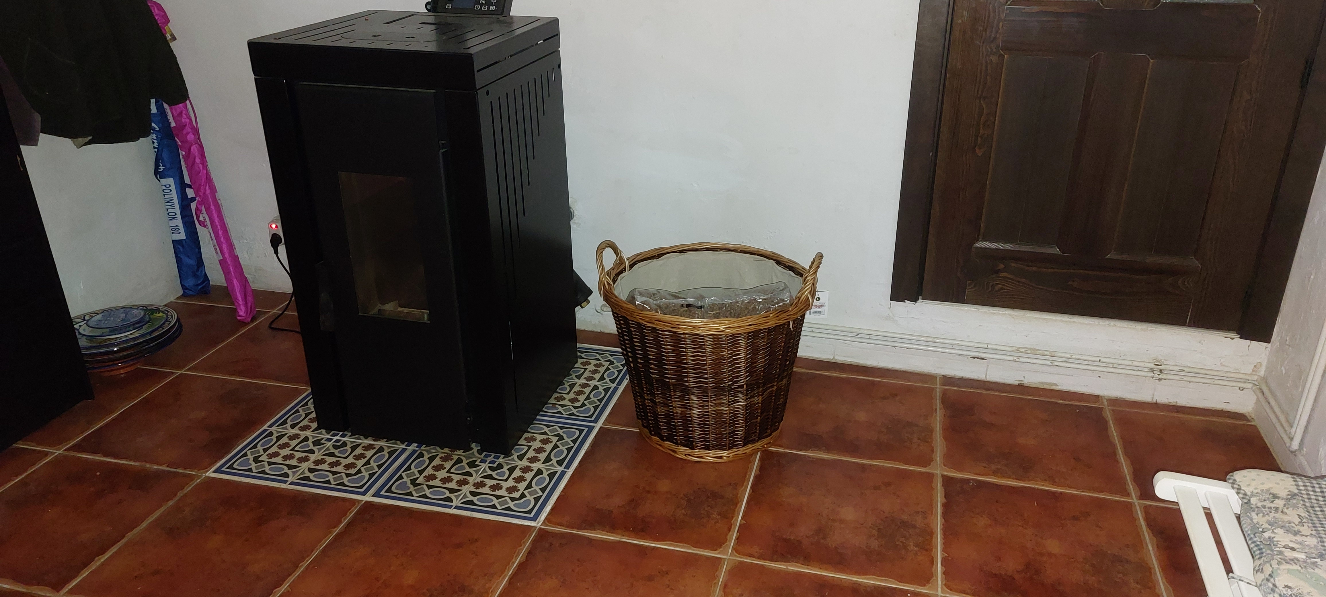 Verder nog een koper kleurige kraan gekocht voor de buitenkeuken en een paar zakken pellets voor de kachel en ik mocht alvast mijn kerstcadeau van Elvira kopen. Een mooie mand waar een pelletzak goed in past.
