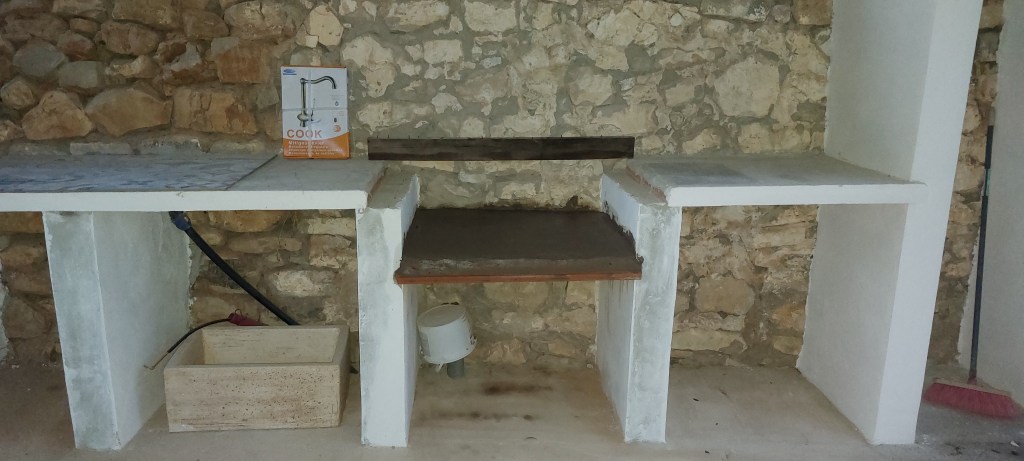Toen even bepalen hoe het verder opgelost moest gaan worden, we besloten dat er nog wat bakstenen naast moeten komen en dat afsmeren met capafina.
