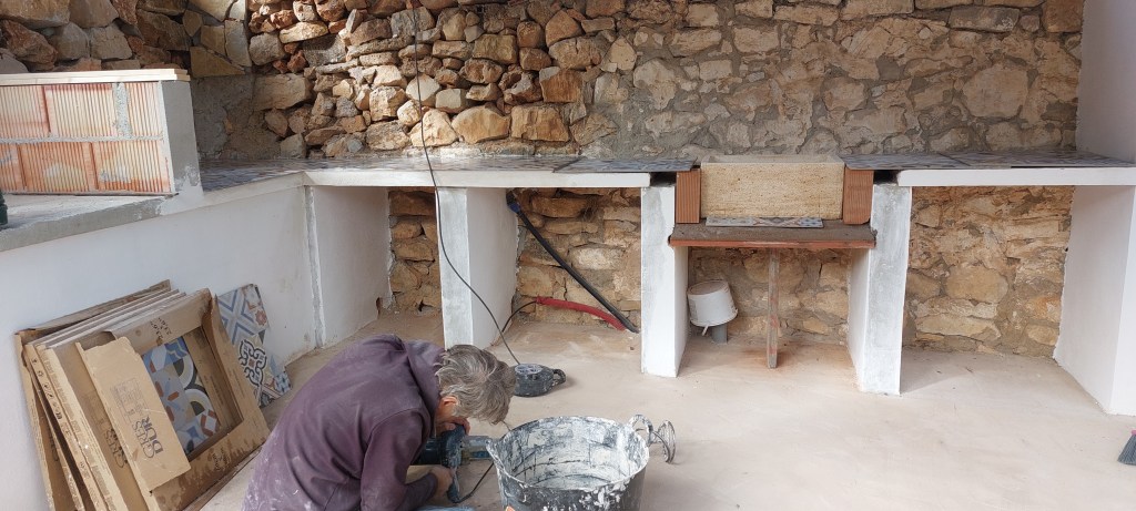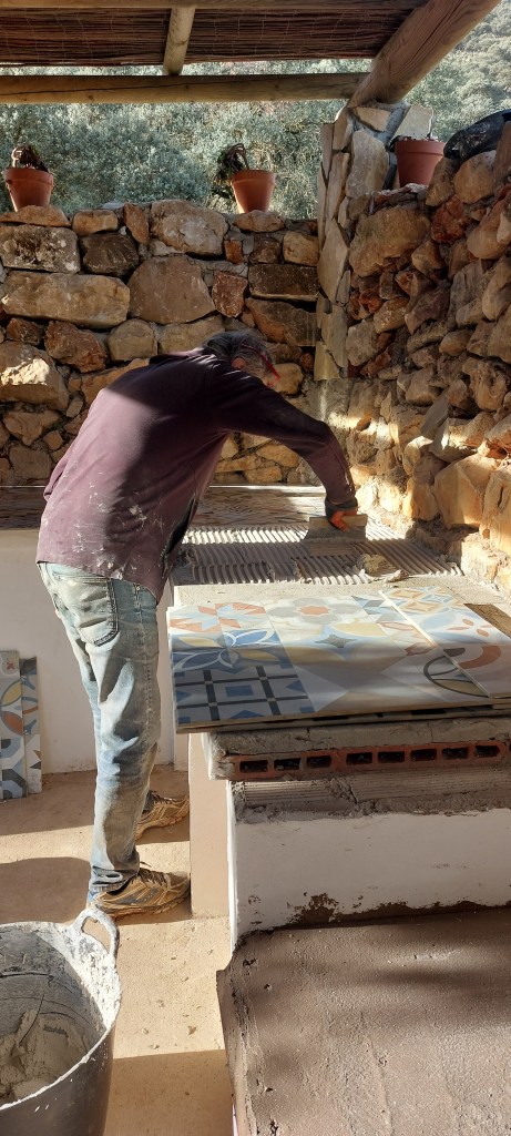 Dat klusje gaat Paco afmaken dus het plakken en op maat maken van de resterende tegels gaat Lesley de volgende keer doen.