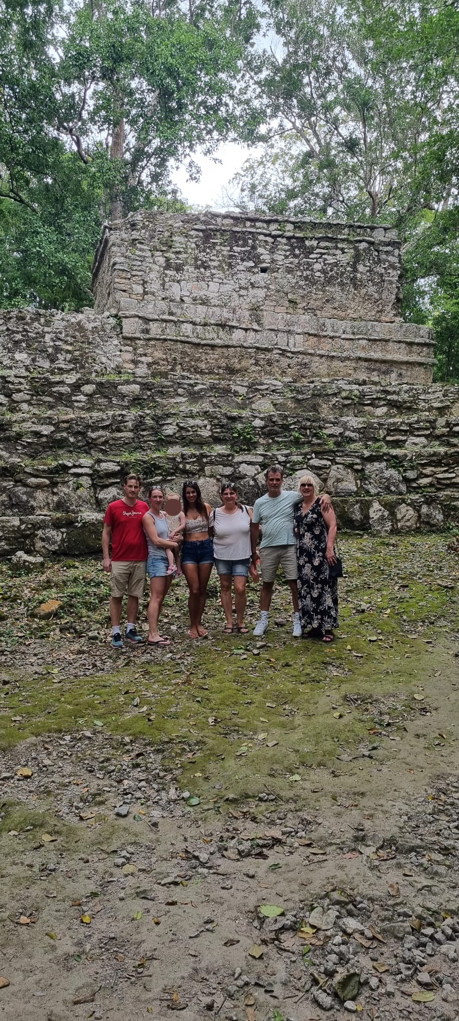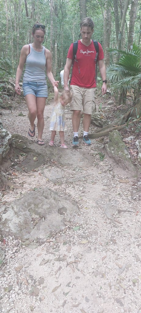 Fallon vertelde we dat dit geen gewoon bos was maar een jungle. Nog maar niet het verschil verteld maar een jungle is onstaan zonder tussenkomst van de mens. We vertelde ook dat de stenen die daar lagen heel oud waren. Later zullen we haar meer gaan verellen bv dat de Maya’s een indianenvolk waren met een hoog ontwikkelde beschaving. Zij leefden in plaats van in één groot rijk, in verschillende onafhankelijke steden, we zullen nog wel een aantal complexen meer gaan bewonderen op onze reis.