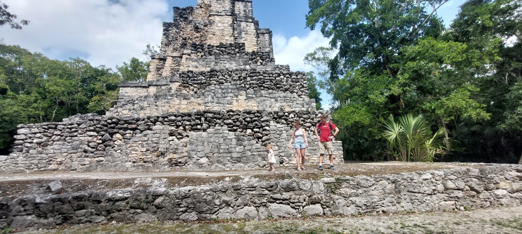 Na ruim een uur gereden te hebben maakten we een tussen stop in Chunyaxche bij de Muyil tempels, het is waarschijnlijk de oudste en langst bewoonde Maya tempel aan de oostkust.