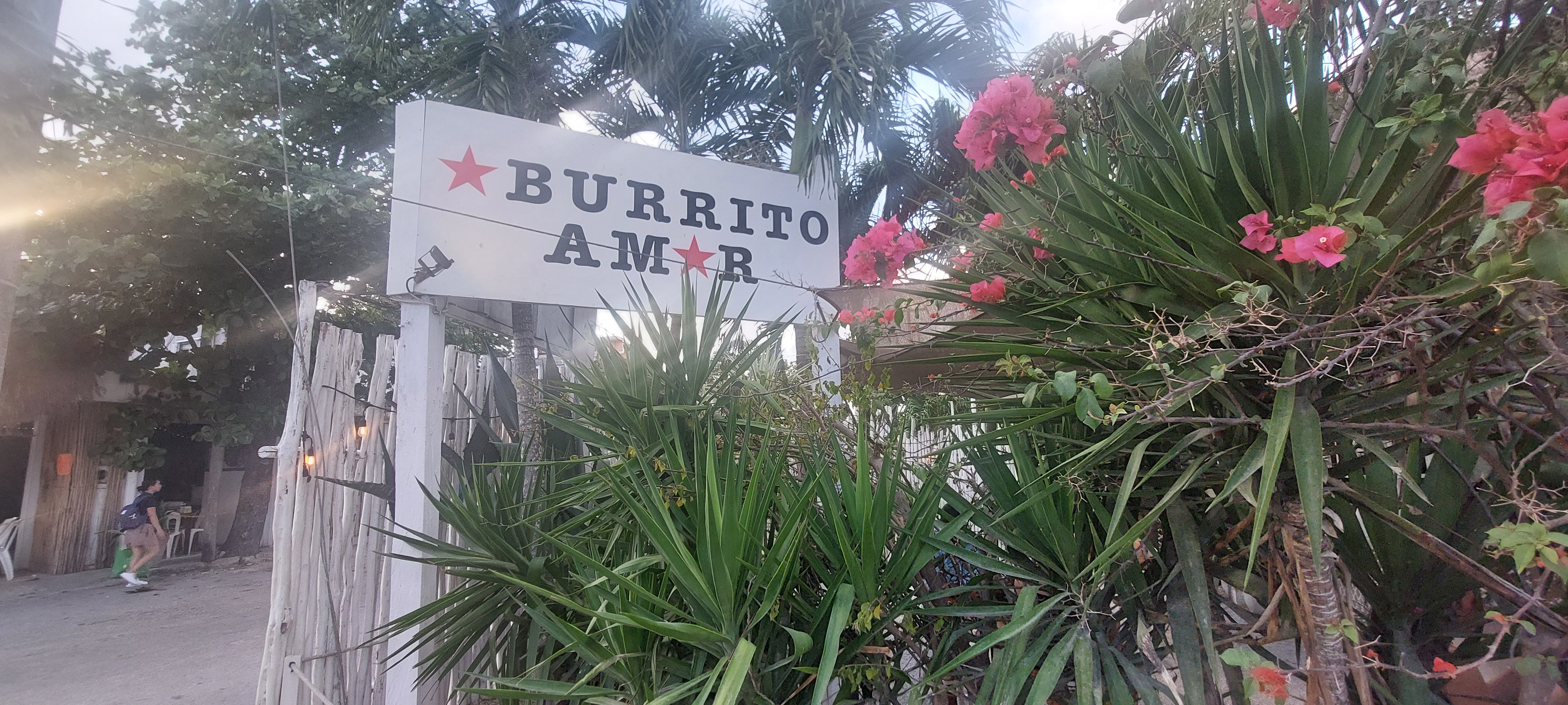 Chey en ik reden naar het stadje naar Burrito Amor.