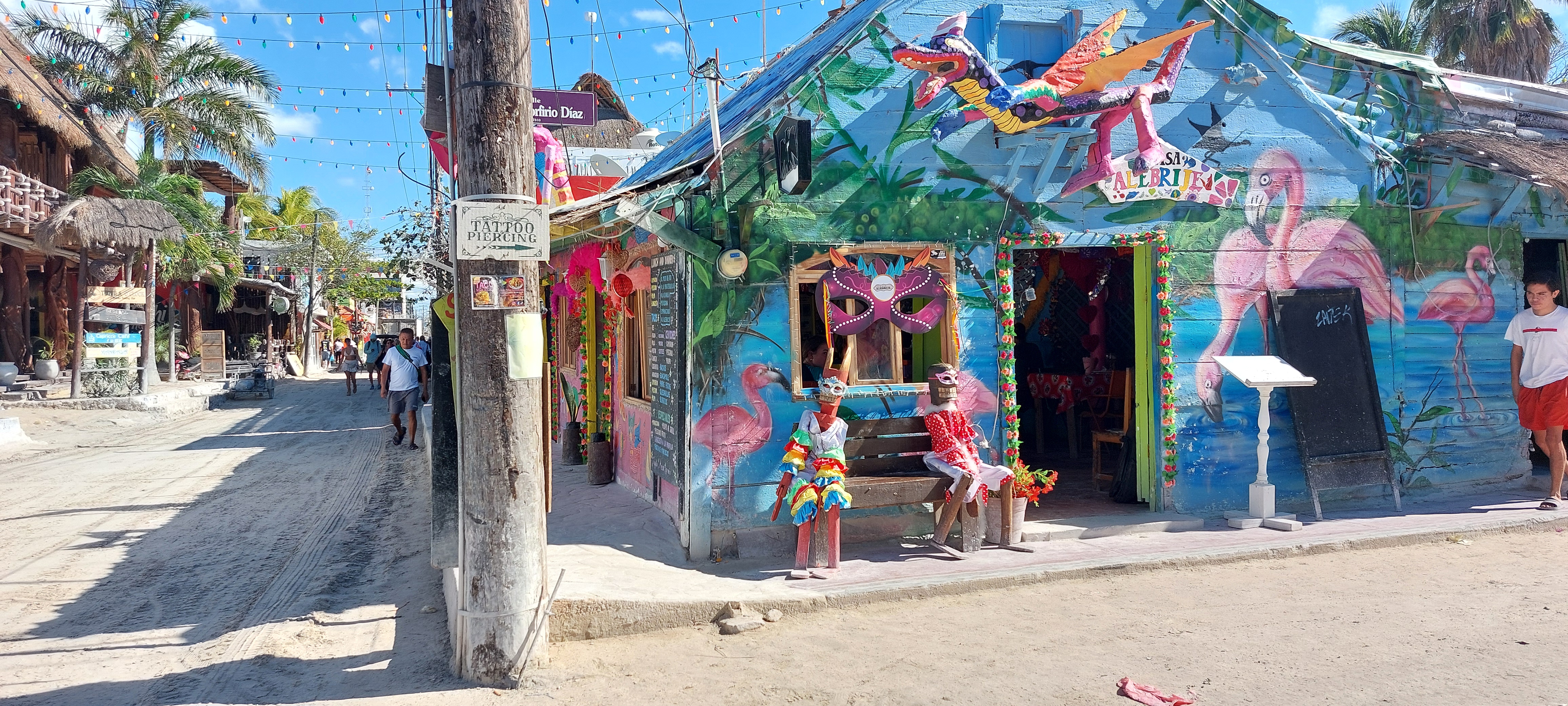 Aan gekomen op Holbox zagen we het resultaat van de storm van 2 weken geleden, de wegen waren her en der nog een grote modderpoel.