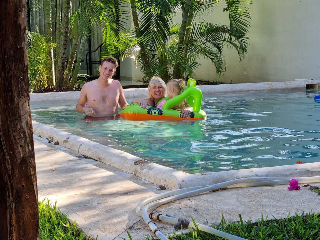 We besloten daarom bij het zwembad te blijven en wat eten te halen en bij het hotel op te eten.