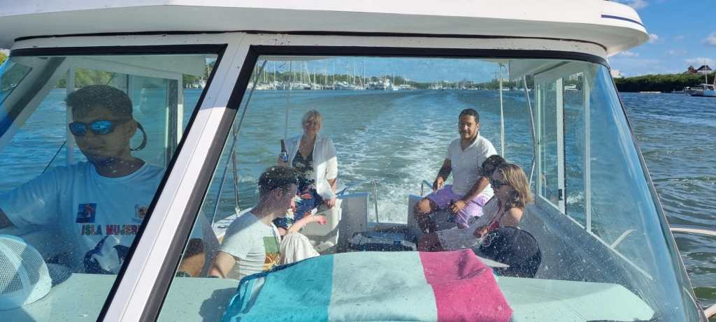 We gingen de boot uit om lekker te zwemmen en Fallon zat net als wij helemaal te genieten van al dat waterpret. Ik zag een rog zwemmen, super leuk.