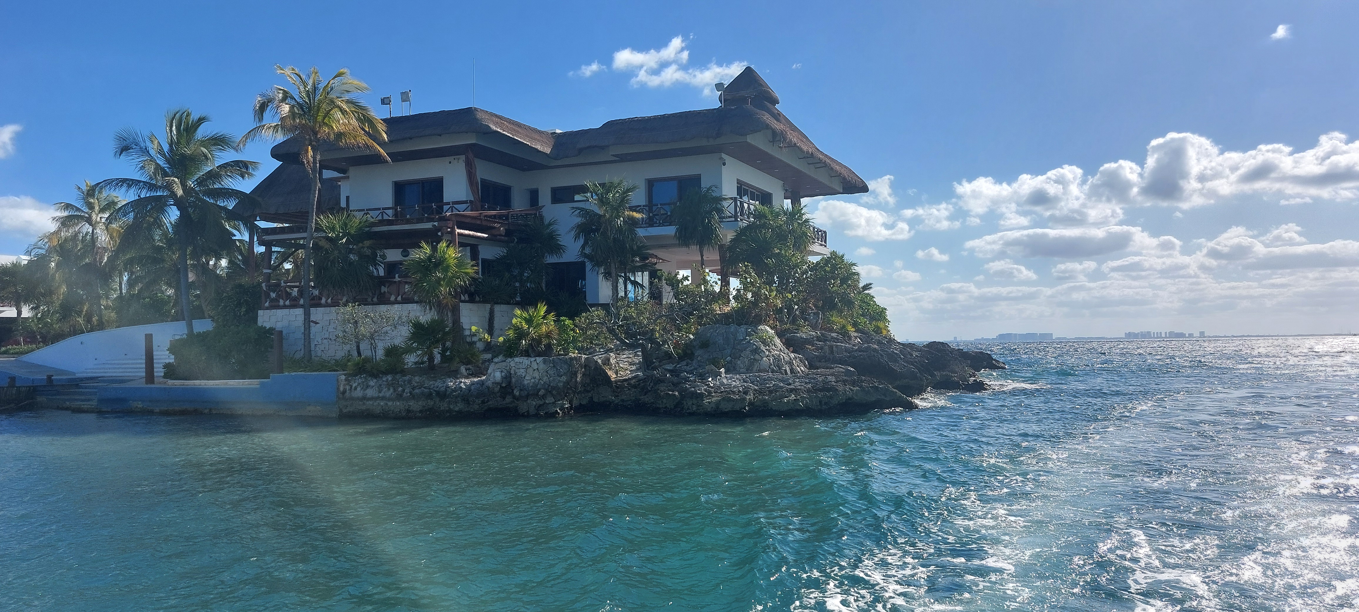 De eigenaar van het biermerk xx ( dos equis) had een mooi stekkie voor zichzelf laten bouwen op het puntje aan de noordzijde van het eiland.