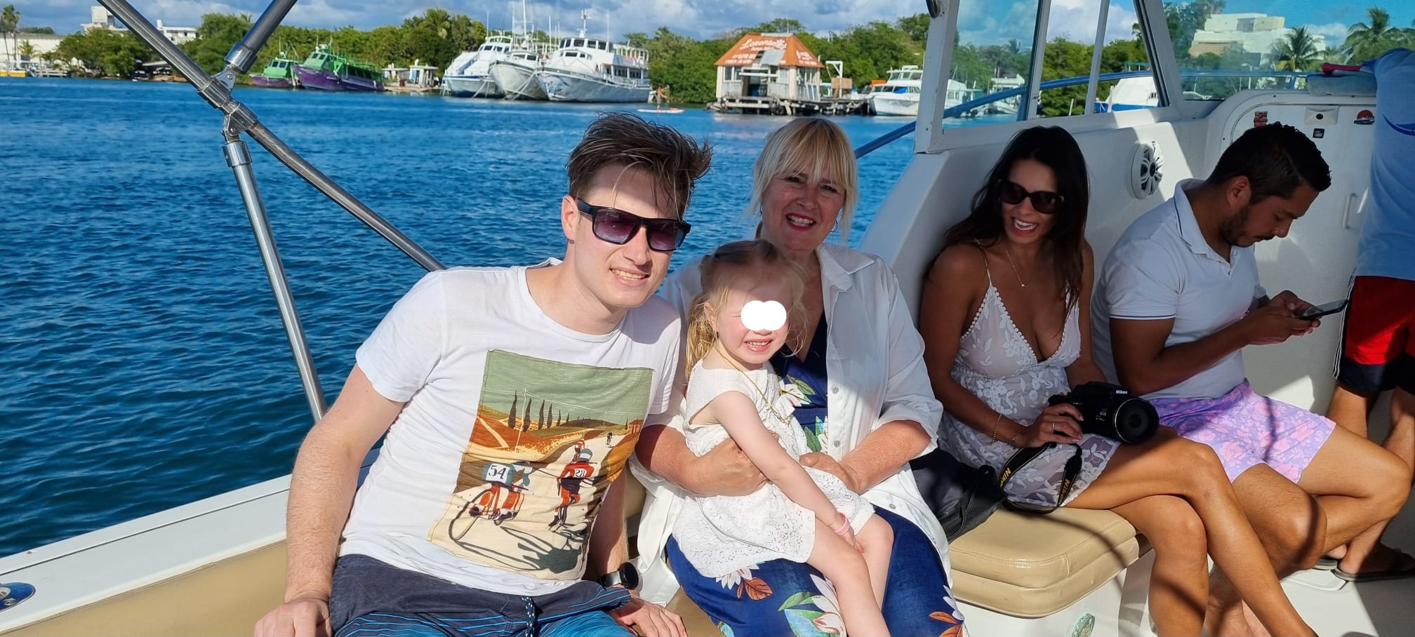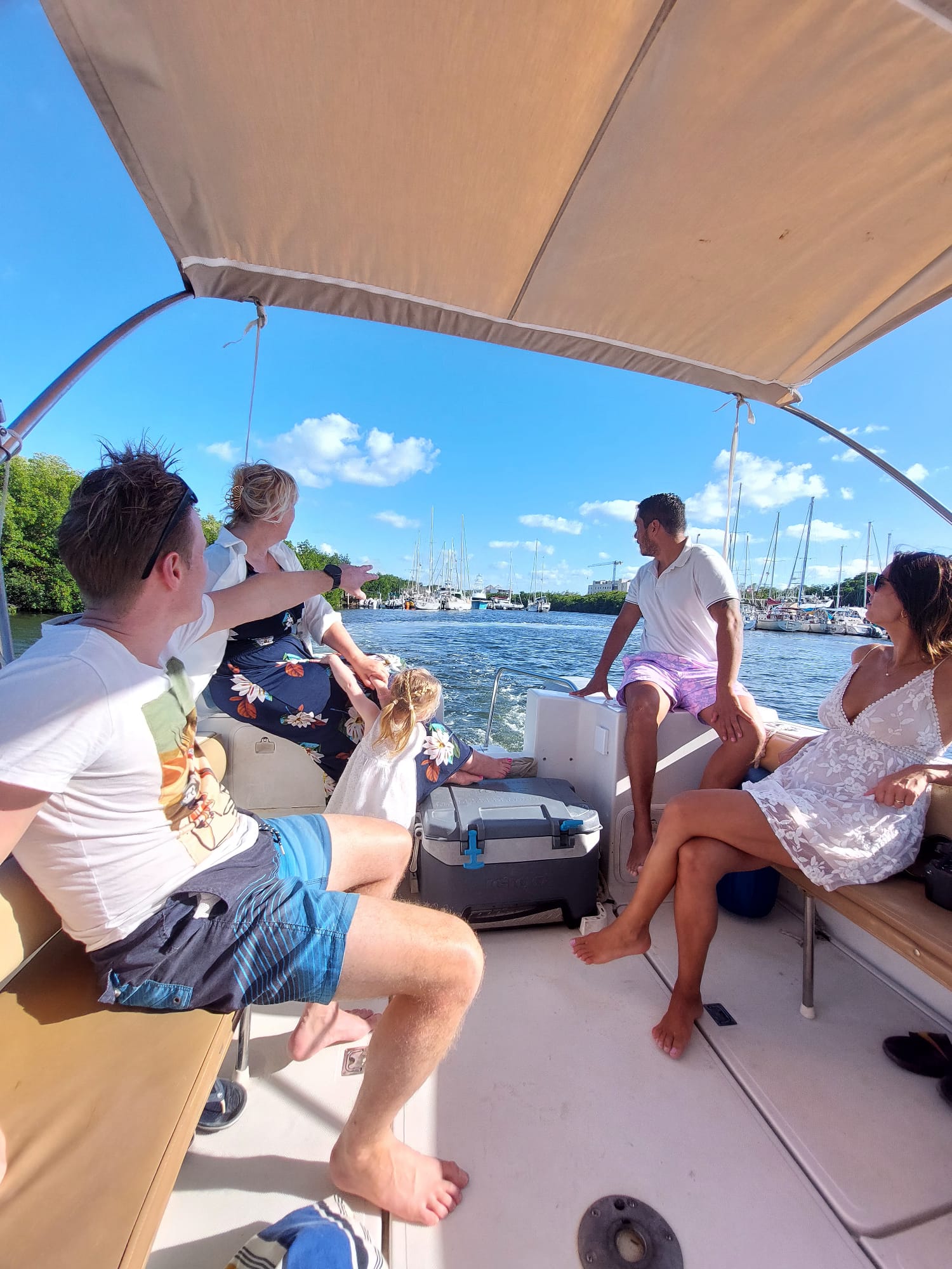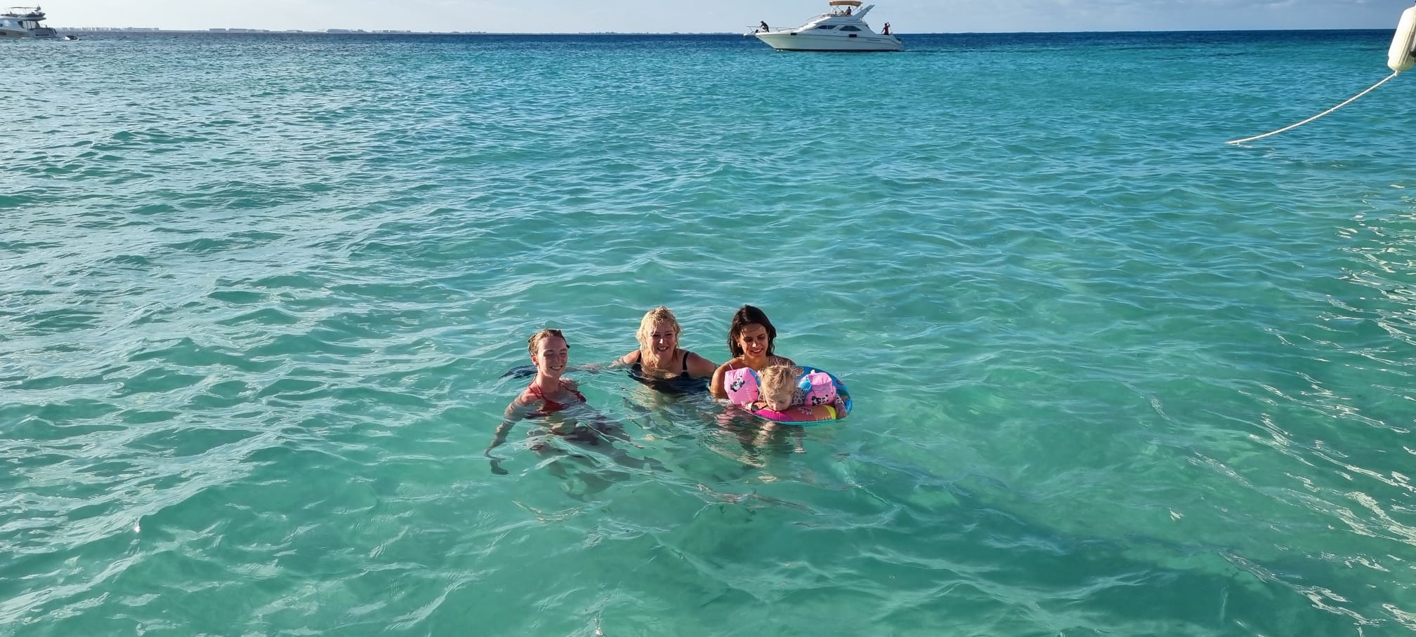 We gingen de boot uit om lekker te zwemmen en Fallon zat net als wij helemaal te genieten van al dat waterpret. Ik zag een rog zwemmen, super leuk.