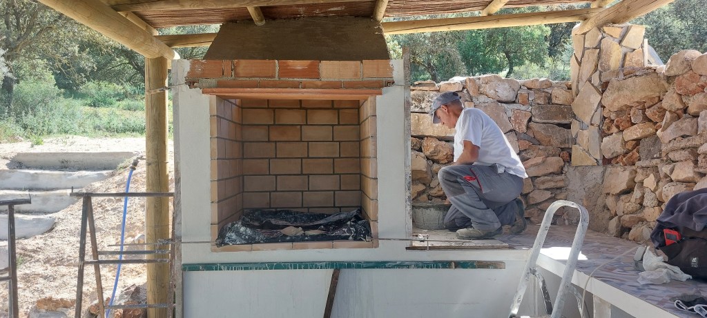 Aan project bbq wordt nog steeds gewerkt. Achteraf gezien hebben we een foute keuze gemaakt deze te laten maken want het is nog steeds niet klaar. Schijnbaar gaat er veel werk in zitten en waren we goedkoper uitgeweest als we zo’n witte kant en klare voor een paar honderd euro hadden gekocht. Maarja deze wordt wel uniek, maar ik heb wel mijn wensen moeten aanpassen, ik wilde een hele flagstone stenen rand eromheen maar dat gaat niet lukken vanwege het hoogte verschil. Daarom komt deze alleen aan de bovenste rand