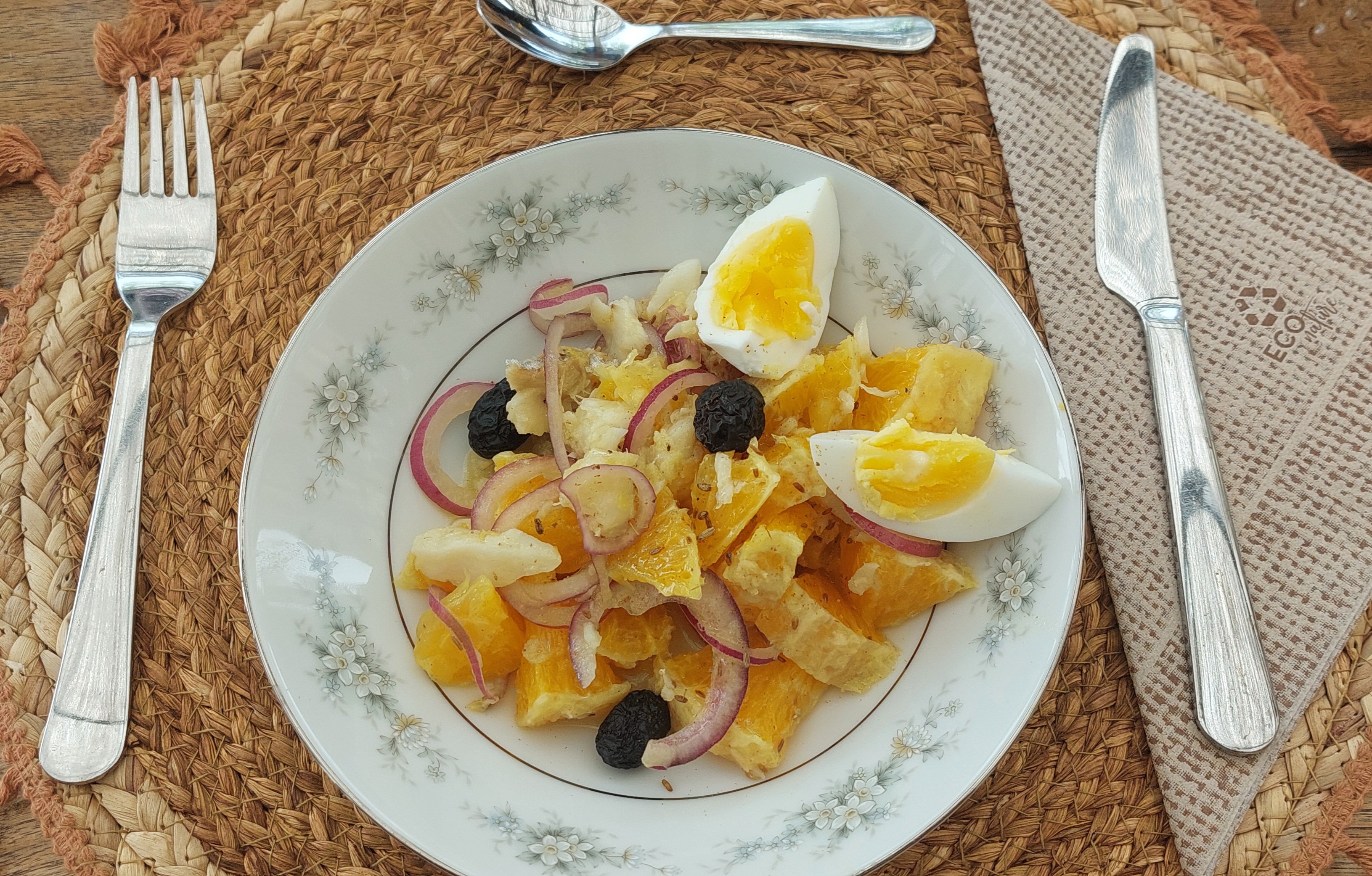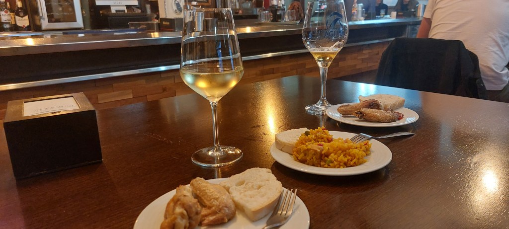 Daarna werden we verrast met een zalige lunch. Het voorgerecht is echt Spaans, een super lekker gerecht met sinaasappel en vis.