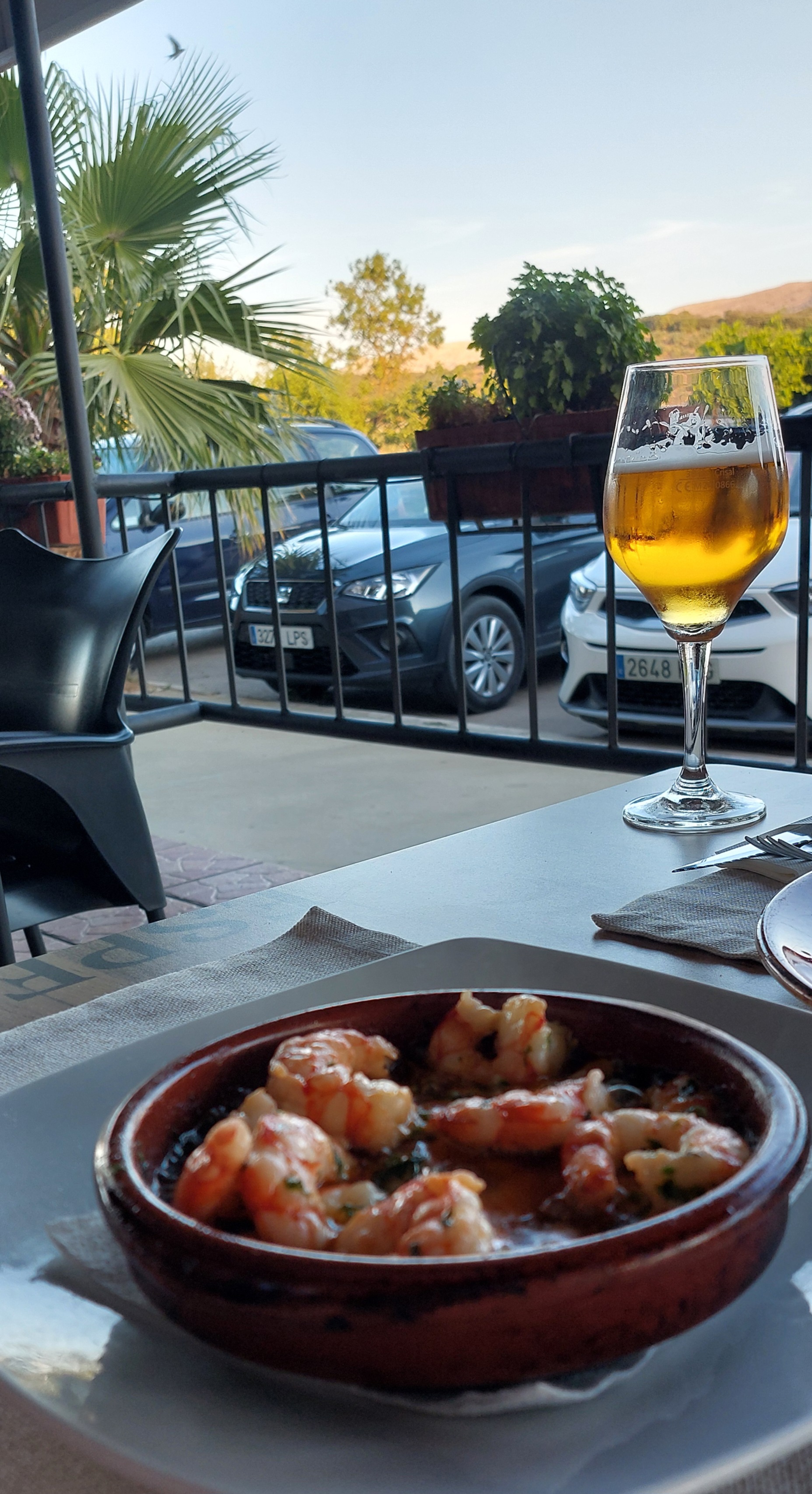 We gingen s avonds eten bij Manolo, als echte Nederlanders stonden we daar op de stoep toen de keuken open ging om 20.30. Voor ons is dat laat en we hebben dan trek. De Spaanjaarden kwamen pas rond 10 uur, toen wij al bijna naar huis gingen. Het was een zwoele avond, thuis ook nog even een afzakkertje gedaan. Wat hebben we toch een heerlijk plekje hier.