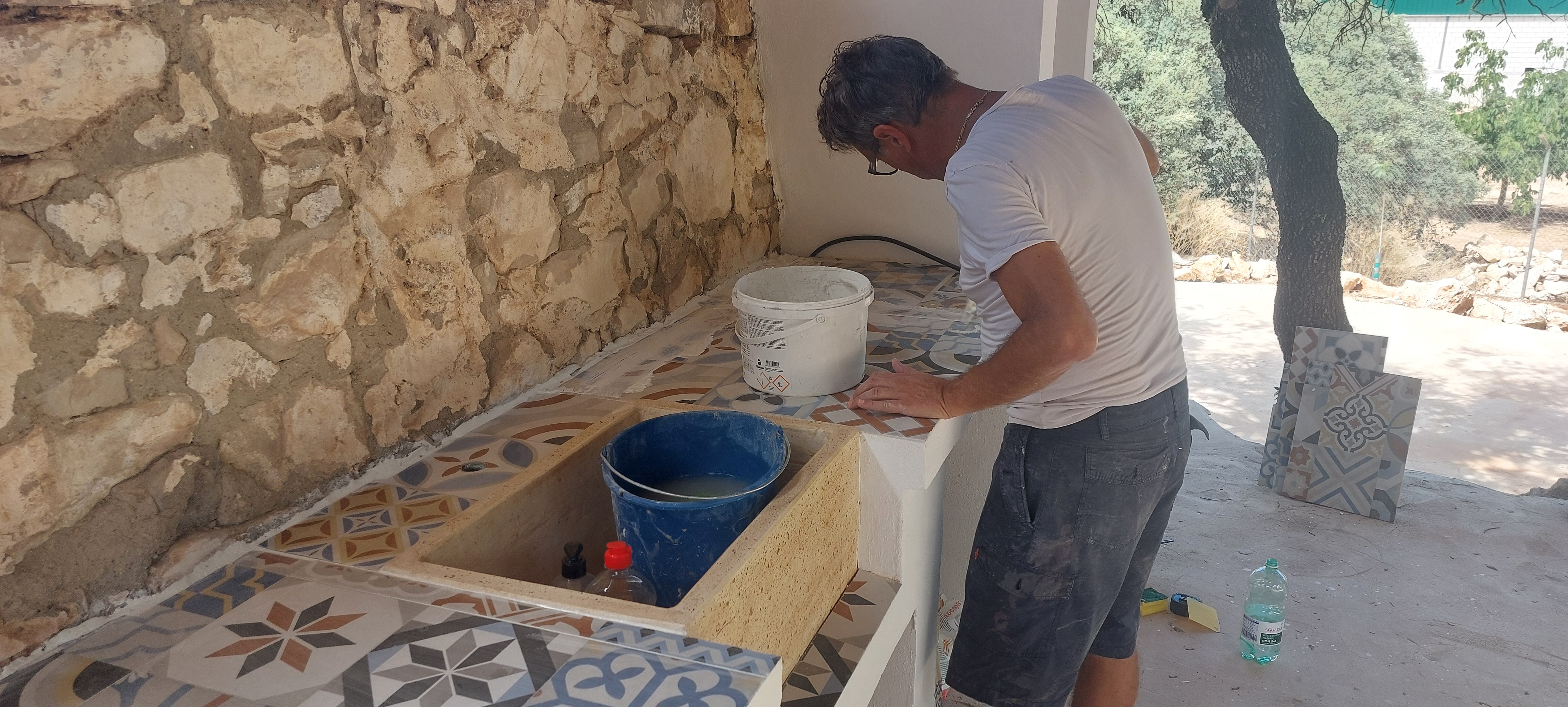 Ik ging de tegels dweilen en de kussentjes neerleggen bij de buitenplek La Calera. Ik ben blij met het resultaat, het is prachtig geworden.