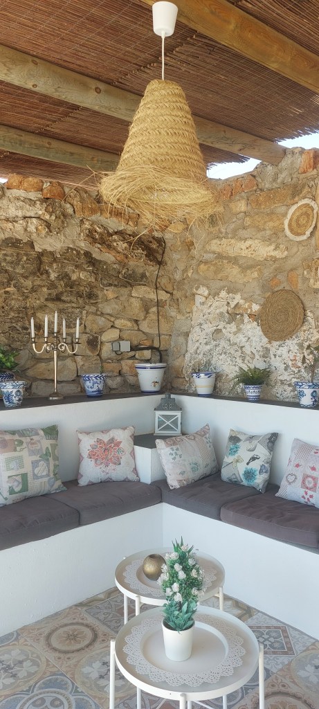 Vorig jaar had ik op een marktje een lamp gekocht voor een prikkie. Ik was er zo blij mee dat ik Lesley deze tovenaars hoed, zoals hij hem noemt, had laten ophangen in de keuken echter dat was toch niet zo’n succes, hij was te groot voor die plek en te donker. Natuurlijk had ik alweer een nieuw plekje bedacht namelijk bij de buitenplek La Calera, daar komt hij veel beter tot zijn recht. De oude lamp maak ik even goed schoon en komt weer vertrouwd in de keuken terug.