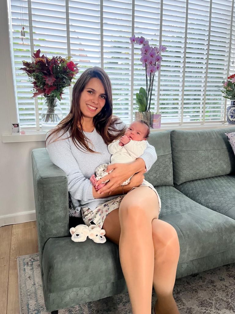 Pas toen ze thuis de borst kreeg was ze rustig daarna kon papa haar rustig knuffelen.