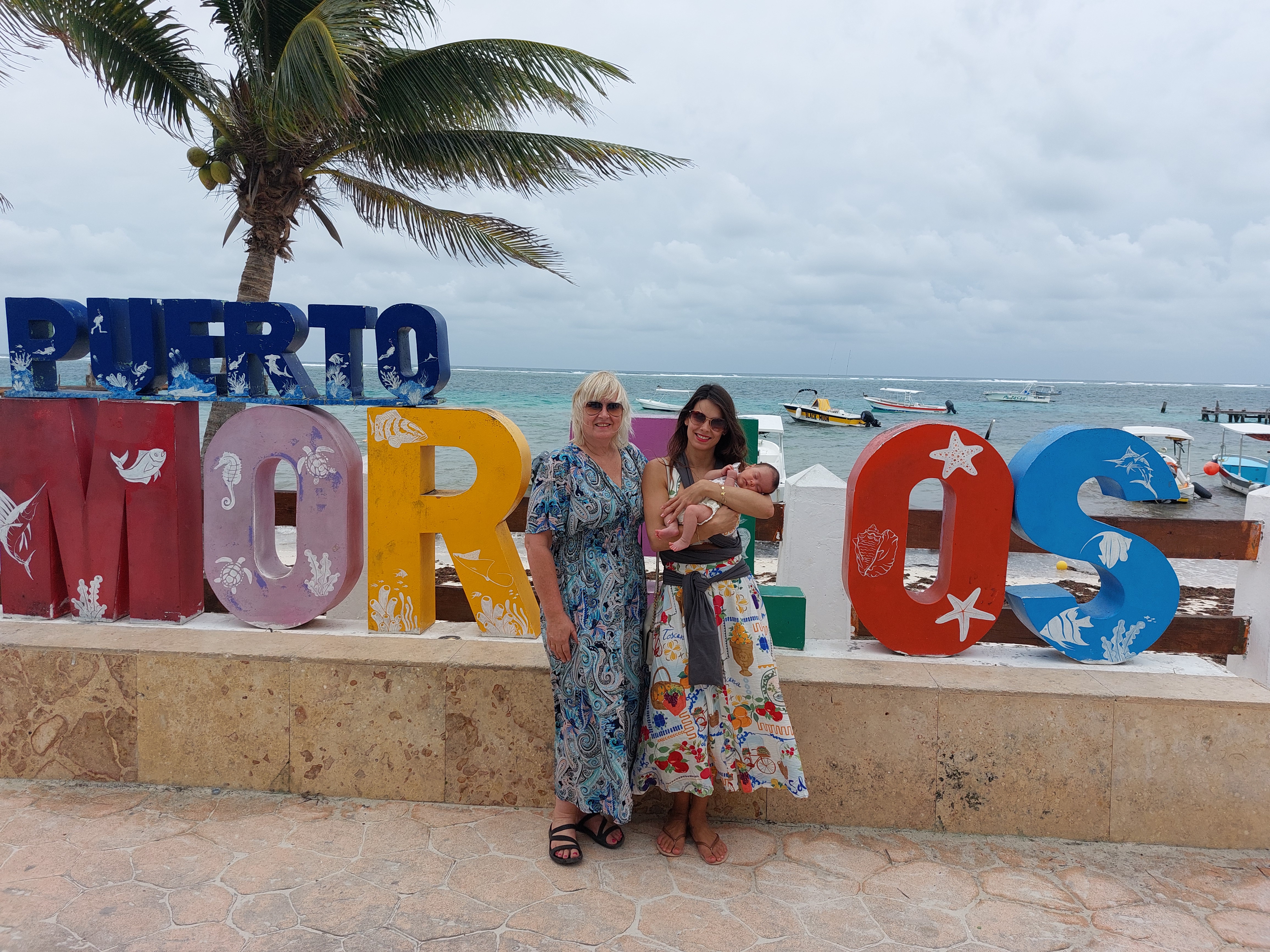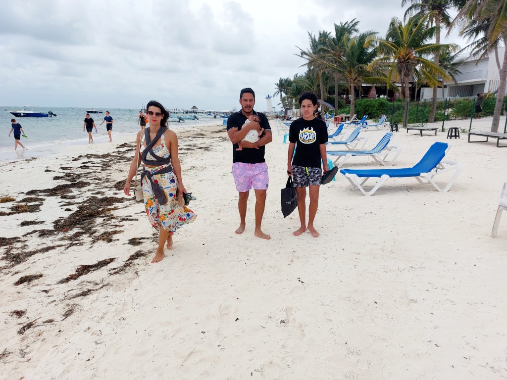 Voor Lila de eerste keer dat ze op een Mexicaans strand is geweest. Het was bewolkt en waaide stevig maar de temperatuur was wel 27 graden.