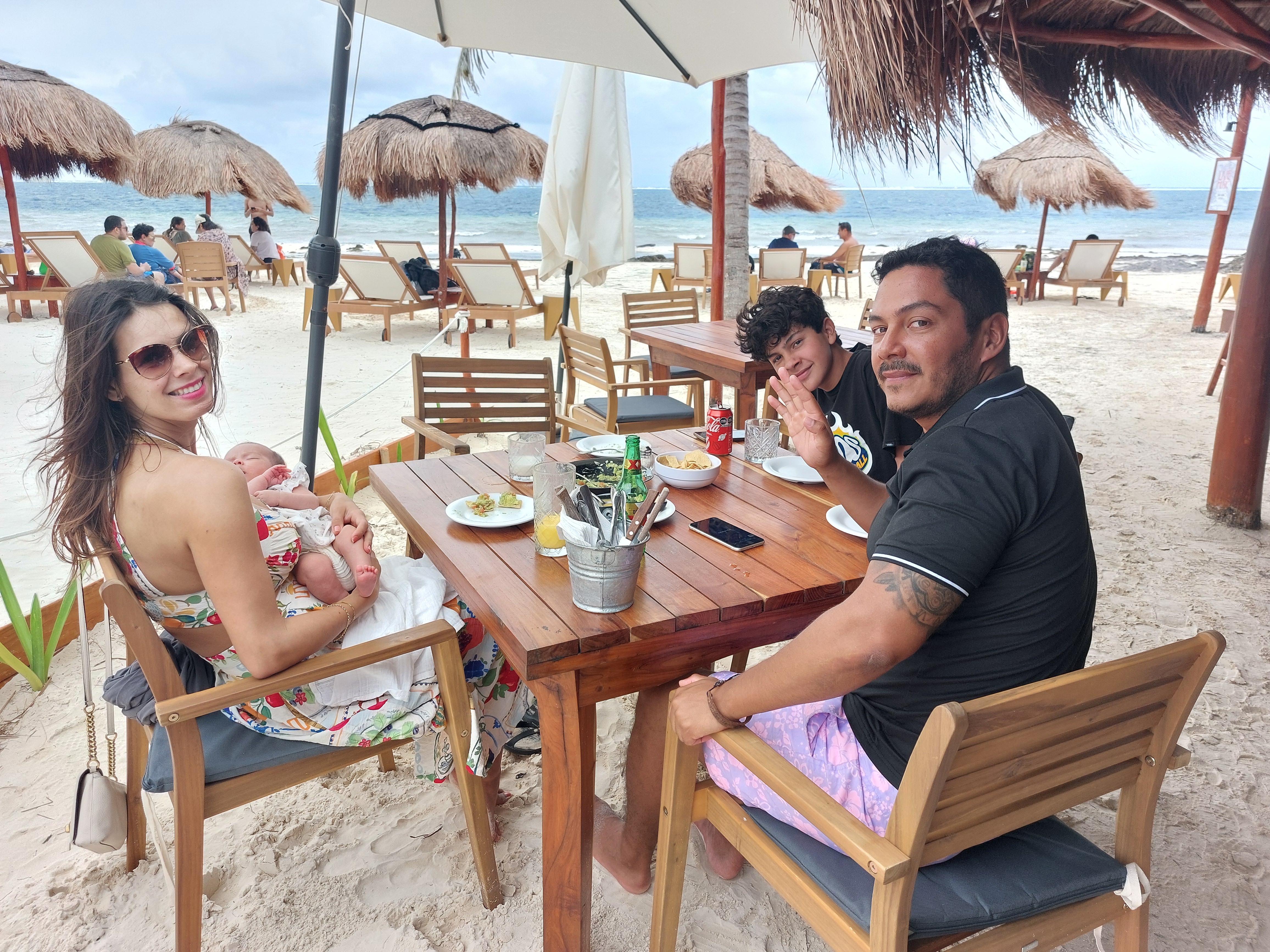 Bij beach restaurant Unico gingen we lunchen. Eigenlijk perfect dat het bewolkt is zo kan kleine Lila wennen aan het weer hier.