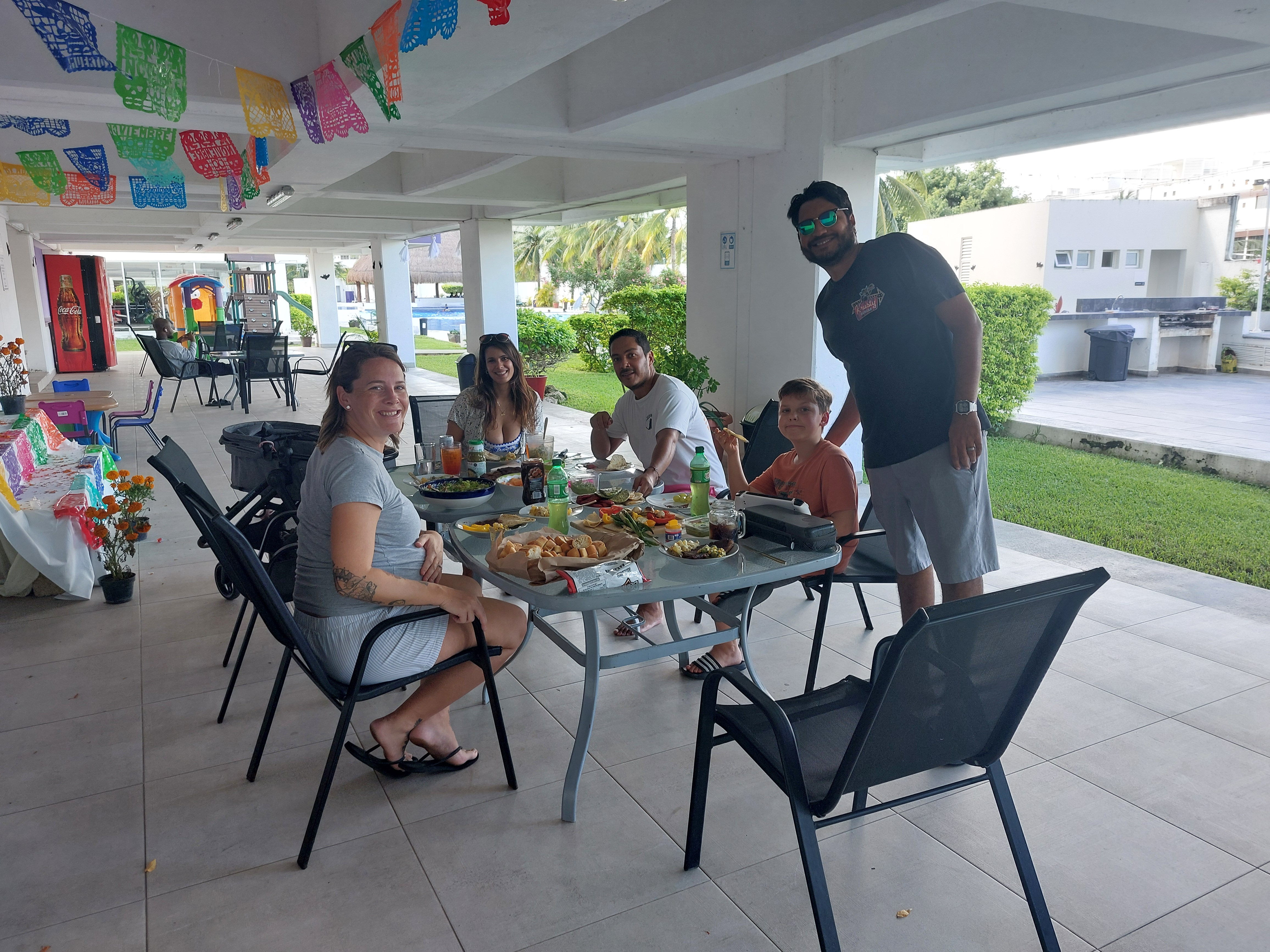 Rond 2 uur kwamen de vrienden van Chey en Arturo aan. Ze hadden zelf ook nog wat lekkere dingetjes meegenomen. Carlos is een goede vriend van Arturo en komt uit Mexico en Jori komt uit Canada. Bijna wordt hun kindje geboren, ze weten nog niet het geslacht maar weten wel al de datum (21 november) en dat de baby Charlie gaat heten, of het nu een jongen of een meisje is. In vele landen in Noord en Zuid Amerika is het gebruikelijk dat de naam al bekend wordt gemaakt. Wij vinden dat maar gek. Het zoontje van Jori is 10 en heeft 3 paspoorten. Mexicaans, Canadees maar ook Brits omdat zijn vader daar vandaan komt, die nu in Amerika woont trouwens. Hij spreekt vloeiend Engels en Spaans en zit ook op een tweetalige school in Cancun. Misschien is dat in de toekomst ook wel wat voor Lila.