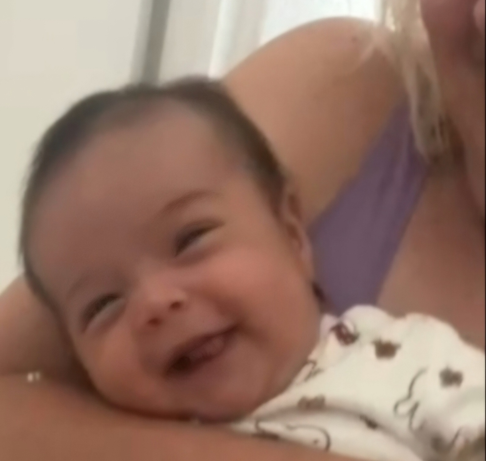 Maar op het moment spreekt ze alleen nog babytaal, ghe ghe, gaa, gaa, ooh, ooh. Zo schattig ze is nu echt haar stemmetje aan het ontdekken, ze lacht nu ook met geluid.