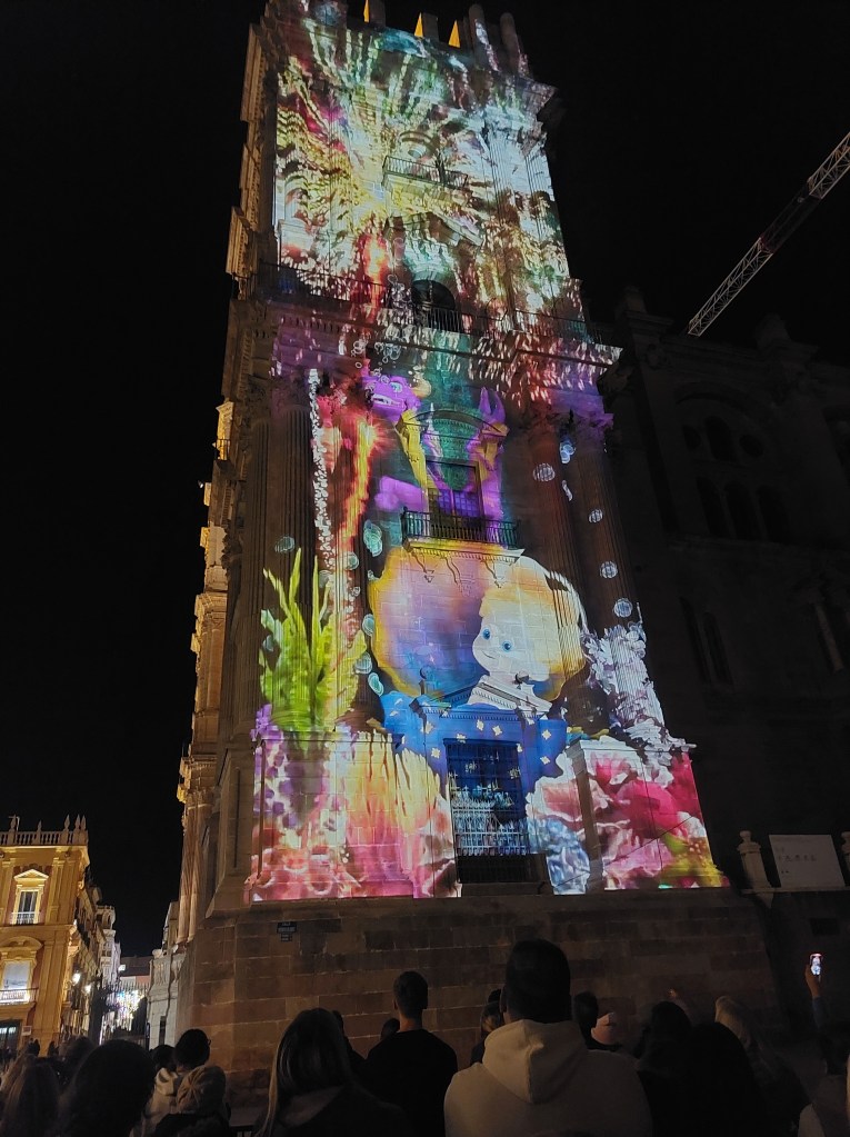 Om 7 uur stonden we aan de zijkant van de catadraal om daar de projectie te zien. Wederom prachtig, wat een belevenis weer. Málaga is geweldig!