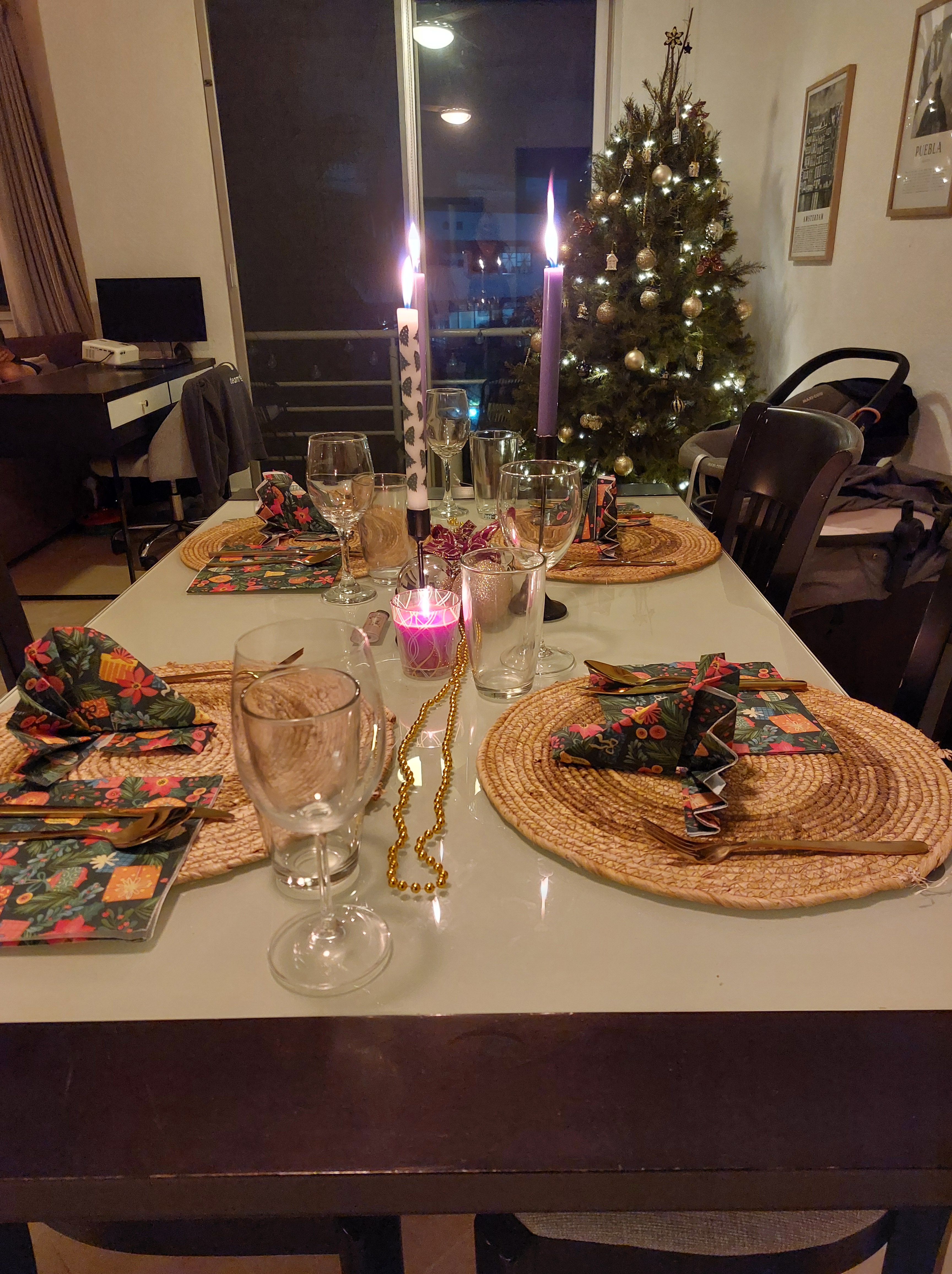 Toen we thuis kwamen zagen we dat het appartement prachtig versierd was, helemaal in de kerstsfeer.
