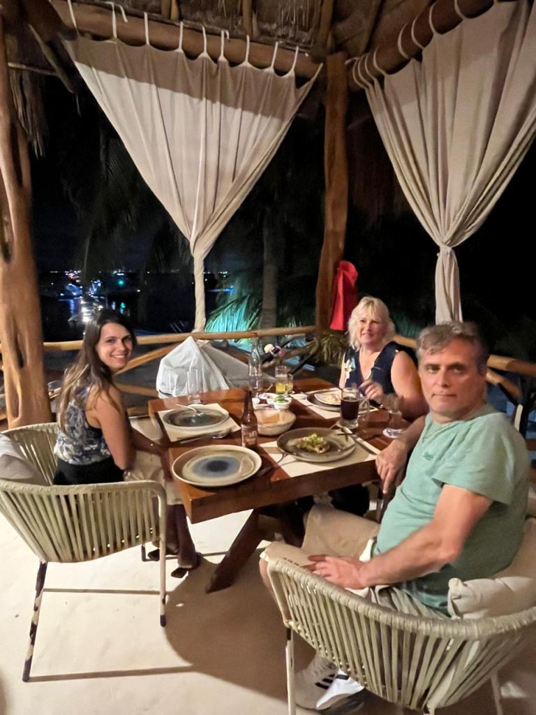 Gelukkig waren de decibellen van de muziek beter vannacht. Het grote podium was afgebroken en vannacht hoorden we alleen de reguliere muziek van de beachclubs. Het is wel echt jammer van deze paradijselijke plek hoor dat de beide buren de muziek zo hard hebben aan staan, ook overdag staat het net een tikje te hard, vooral muziek die wij niet echt mooi vinden. Arturo zegt altijd daarvoor komen de mensen juist naar Cancun en omgeving, om te feesten op harde muziek, maar daar ben ik het niet mee eens, er zijn genoeg mensen die hierheen willen komen om te chillen en te genieten en dan mag er best muziek bij maar zet het niet zo hard in godsnaam en niet de hele tijd van die muziek met zo’n eentonige sound en harde bas. Misschien zijn we ouderwets want wij worden er tureluurs van, maar ook Chey vindt het soms wel te hard en ze heeft voor Lila nu maar zo’n noisecanceling koptelefoon besteld die neemt Arturo morgen mee als hij weer naar Isla komt.