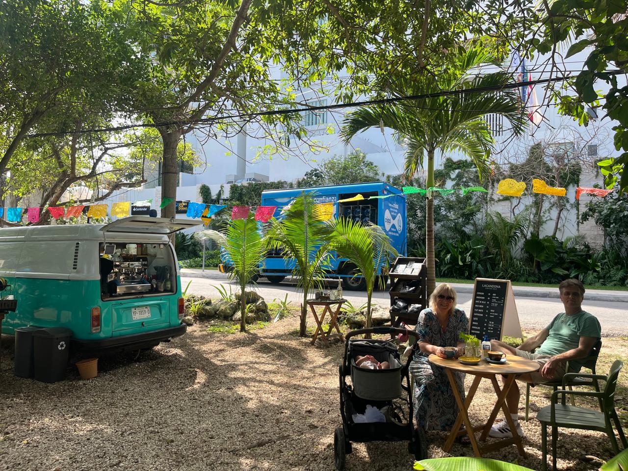 Vanmorgen waren we 10 minuten verder gelopen richting Punta Sur en daar staat een heel leuk koffiebusje.