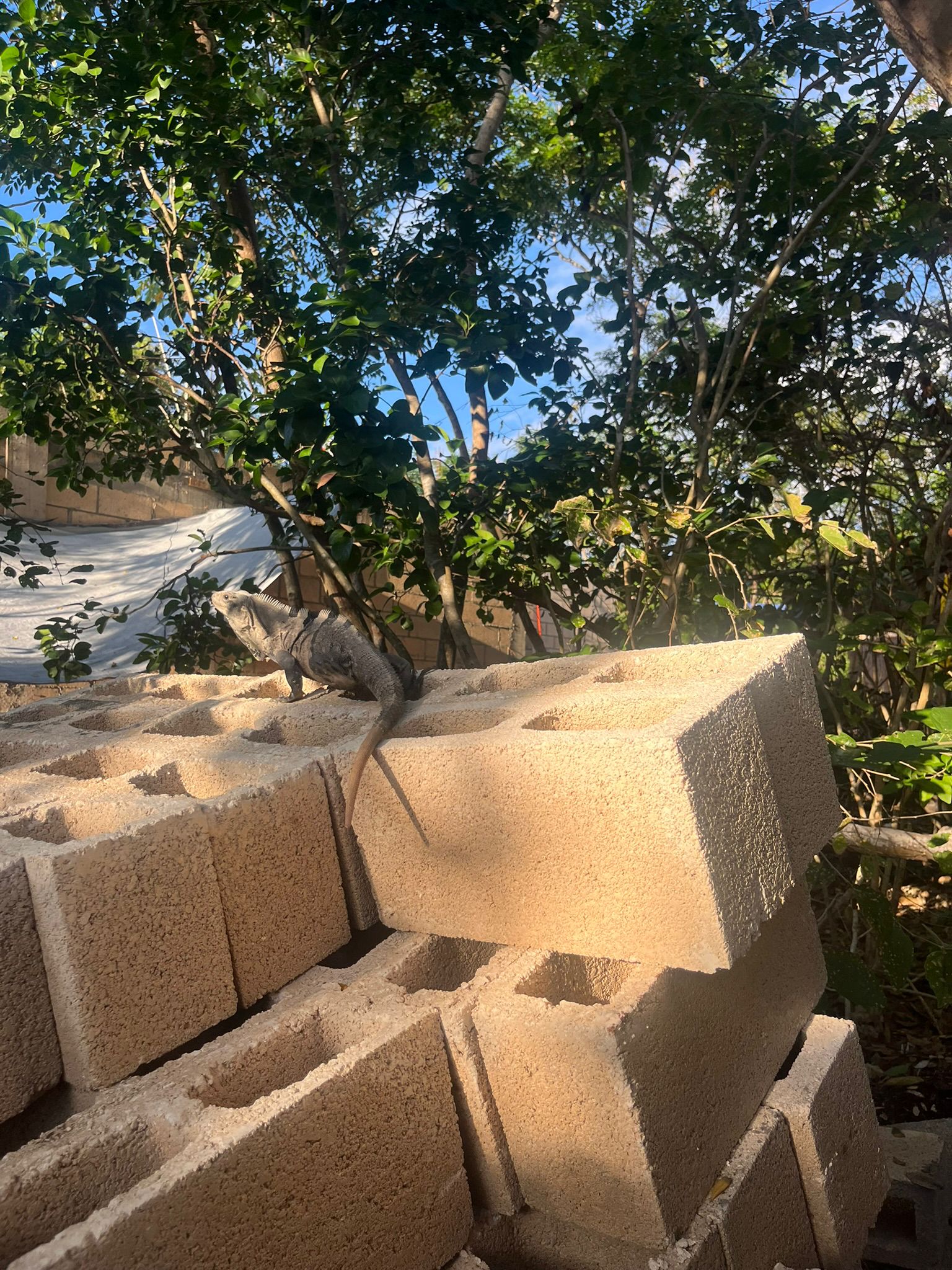 Nadat we wat gegeten en gedronken hadden liepen we terug naar Chey haar land waar ze een afspraak had met de bouwer. Grappig te zien dat nu ineens alle troep wat rond zwierf op de bouwplaats zoals lege blikjes, flesjes en verpakkingsmateriaal van eten ineens opgeruimd was. Dat lag gisteren nog kris kras over het land van Pumbas Paradise. Maar de aannemer en de eigenares kwamen natuurlijk aangekondigd kijken dus hadden ze alles netjes opgeruimd. We zagen ook hun nieuwe huisdier de leguaan lekker liggen zonnen bij het nog te maken zwembad.