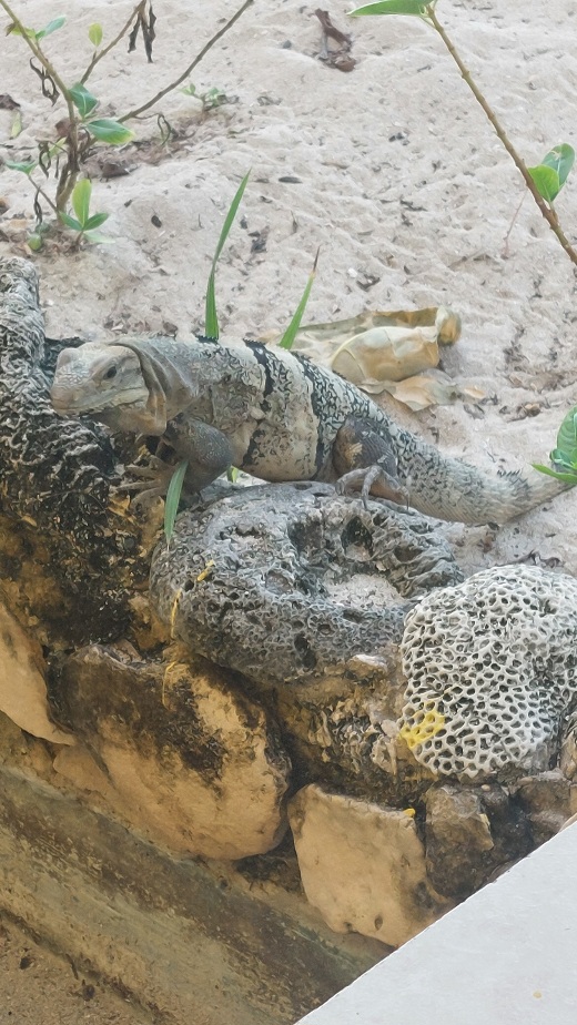 Na ons ontbijt waren we getuige van een stukje territorium drift van de leguanen. Er blijken er drie te wonen op dit stukje strand en ze kunnen elkaar niet luchten of zien. We merkten dat er eentje blijkbaar over zijn grens heen ging en plots kwam er een ander aangerent met opgeblazen nek om hem te verjagen terwijl ze achter elkaar aanrenden hadden ze blijkbaar niet in de gaten, door de strijd, dat ze een andere grens overschreden en een derde kwam eraan om ze te verjagen. Wat een schouwspel voor ons.