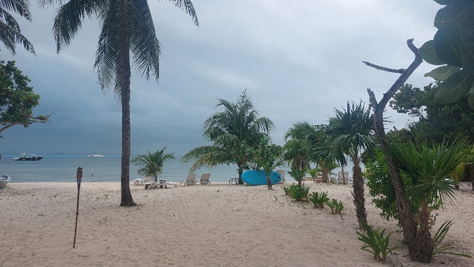 We waren nog net op tijd om even te zwemmen en toen betrok het weer en begon het keihard te regenen. Het was zo donker dat je Cancun niet meer aan de overkant zag.