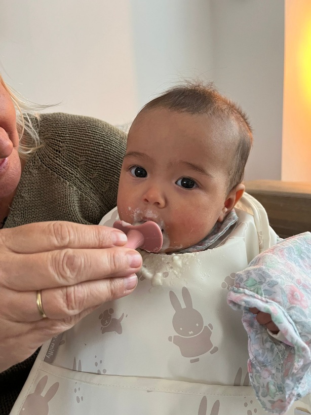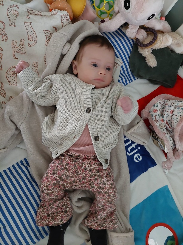 Met Lila was het de eerste week een behoorlijke uitdaging omdat ze een flesweigeraar was en ik de moedermelk met rijstepap moest aanmaken en naar binnen moest lepelen maar gelukkig hadden we na 4 verschillende flesjes met diverse speentjes geprobeerd te hebben uiteindelijk er 1 gevonden die ze wel nam, dat maakte het oppassen wel een stuk makkelijker maar het kleine dametje slaapt weinig overdag, ze wil overal graag bij zijn, dus neerleggen in de box ho maar.