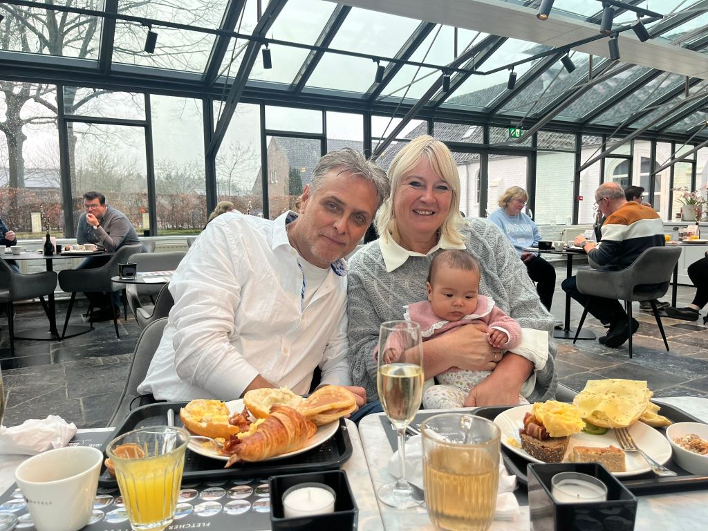 We zijn ook nog in Limburg in een kasteel hotel geweest om onze 36e trouwdag te vieren en Lila en Chey gingen mee omdat daar een vriendin van Chey woont die ook een baby gehad heeft en ze op kraamvisite wilde.