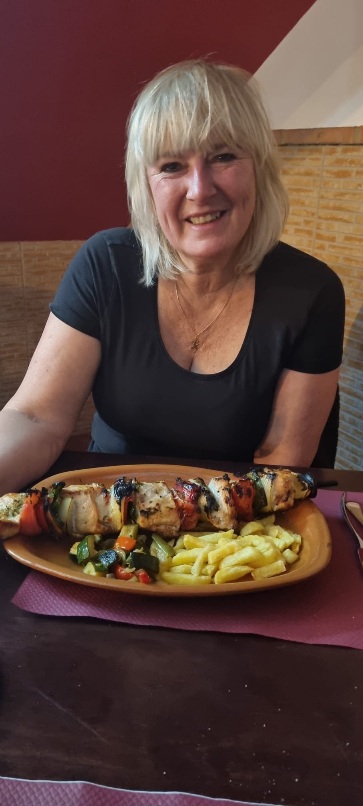 Daarna een reuze brochette kip. We zaten zalig bij de houtkachel.