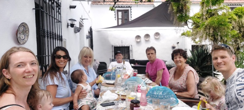 Lang naar uit gekeken een vakantie met de hele familie naar Spanje. Mijn vader en moeder, onze zoon met zijn gezin en onze dochter met haar dochter. Helaas kon haar vriend niet mee want bij Pumbas Paradise hun net opgeleverde vakantie villa is werk aan de winkel. De tuin moet nog gedaan voordat de eerste gasten komen.