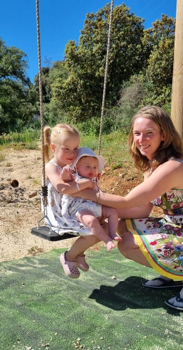 Fallon keek haar ogen uit, ze was er 1x geweest maar toen was ze baby dus nu beleefd ze het veel meer. Is dit jullie huis in Spanje oma en opa, waarom? Nou omdat we dit gekocht hebben, waarom vroeg het kleine stemmetje. Zo bleven we alle vragen beantwoorden. Ik had een speciaal dekbed voor haar gekocht van Sky en dat viel helemaal in de smaak, ze had de mooiste kamer vond ze. Er werd een rondje in de tuin gelopen en de schommel was een succes.