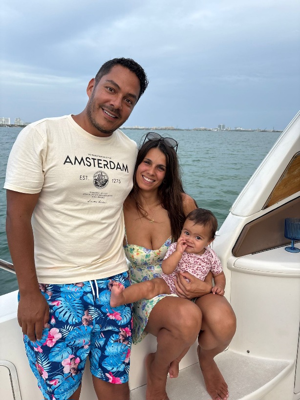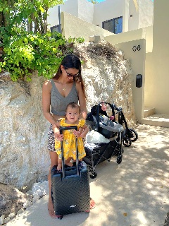 Op 31 mei vertrokken Chey en Lila weer naar Mexico. Helaas zien Les en ik ze pas weer in September. Ik vind dat vreselijk om ze zolang niet te zien want juist nu in deze levensfase gebeurd er heel veel in een baby leventje. Ze kon al zitten maar op de foto’s en filmpjes zien we nu ook dat mevrouwtje kan staan. Hier voor hun huis op Isla parmantig op de koffer.