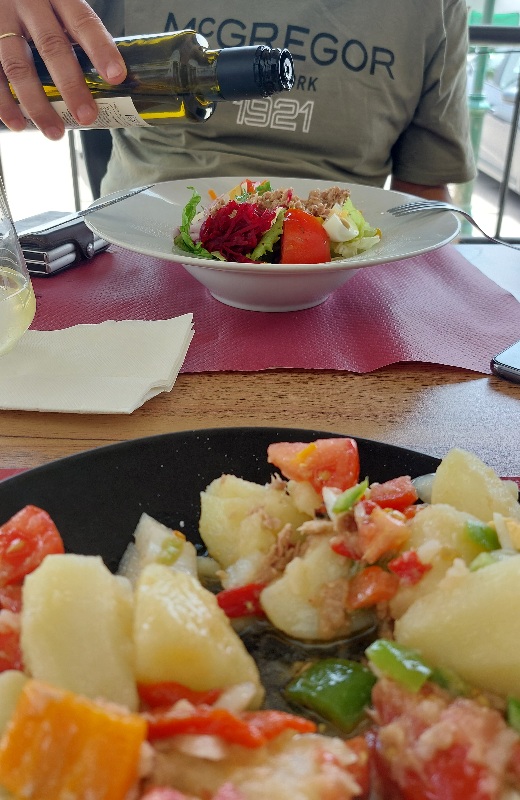 We hebben maar 1 maaltijd gegeten vandaag en dat was een menu del dia, dat was dus ons ontbijt, onze lunch en avondeten tegelijk, door de warmte eet je toch minder.