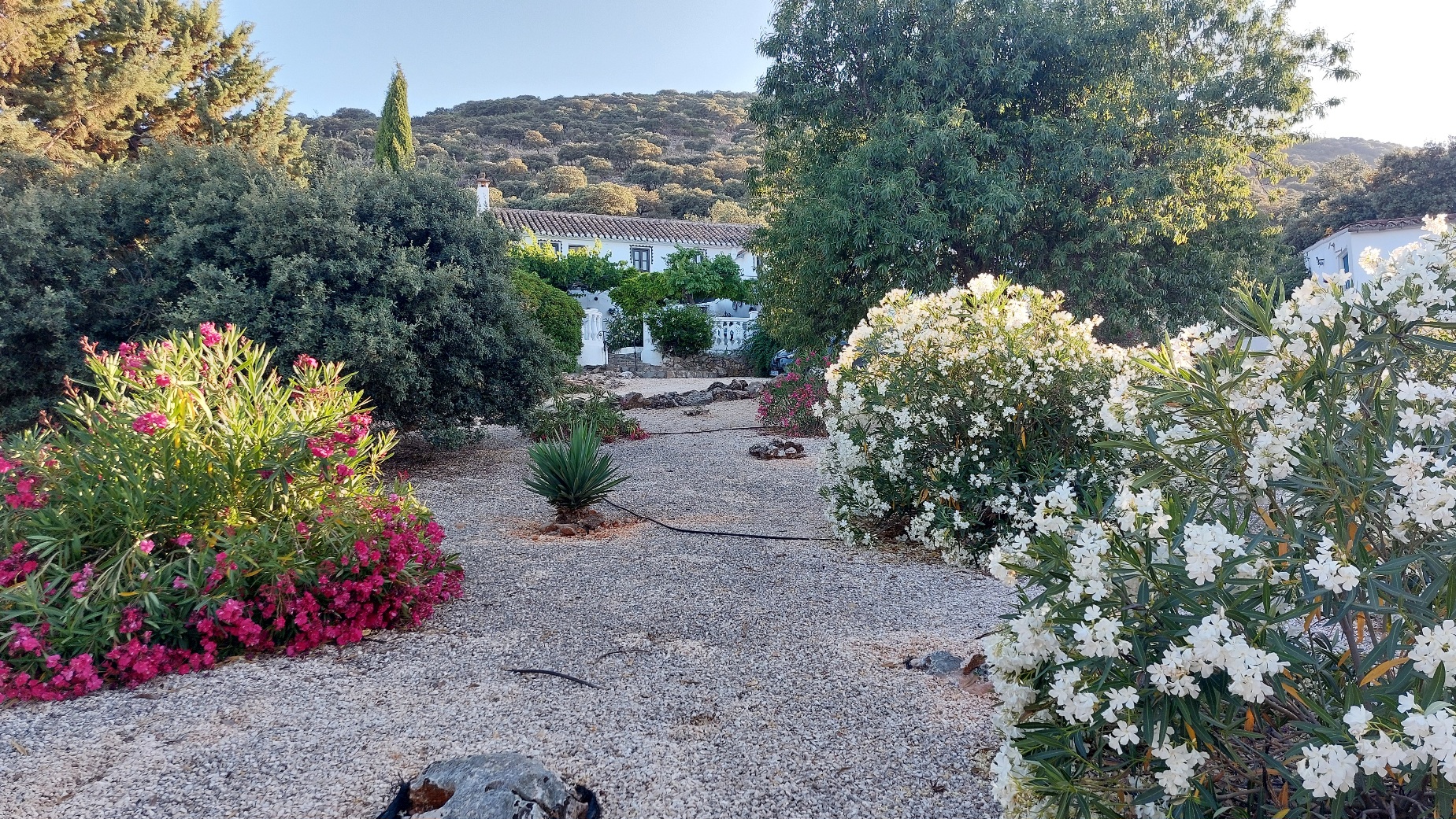 Gewoon even geen zin om dingen te doen, het is warm en we zijn moe. Daar is een vakantie ook voor bedoeld natuurlijk om uit te rusten en geen verplichtingen te hebben. We hebben allebei een e-reader vol boeken dus genoeg te lezen. Tussendoor nog even wat onkruid weghalen en de tuin gaat er steeds beter uitzien, de oleanders staan prachtig in bloei, met die warmte en droogte doen maar weinig bloeiers het hier goed maar de adelfa zoals de Spanjaarden de plant zelf noemen doet het perfect.