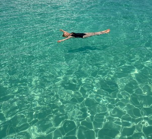 De kapitein speurde het water af en zodra hij Aqua, Aqua riep moest je met 2 personen tegelijk direct het water inspringen vanaf de rand van de boot. We hadden onze zwemvesten al aan, duikbril al op en flippers aan de voeten.