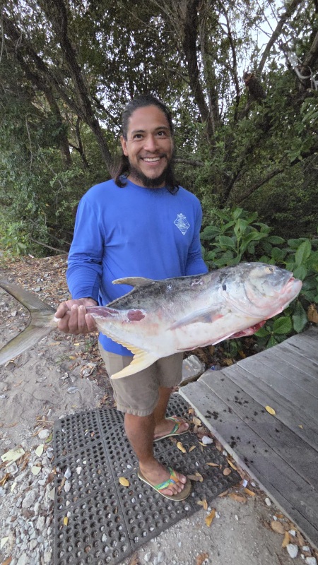 Een stukje over de steiger lopen door de mangrove en je komt uit bij een aanleg steiger met diverse boten. We zagen een visserman aankomen met een goede vangst en trots dat hij was!