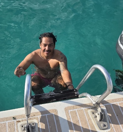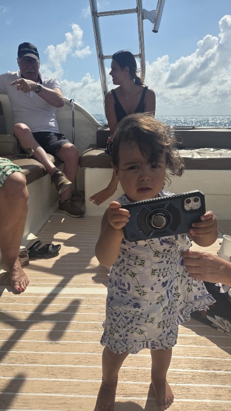 Haar papa had een lekkere duik vanaf de boot gemaakt.