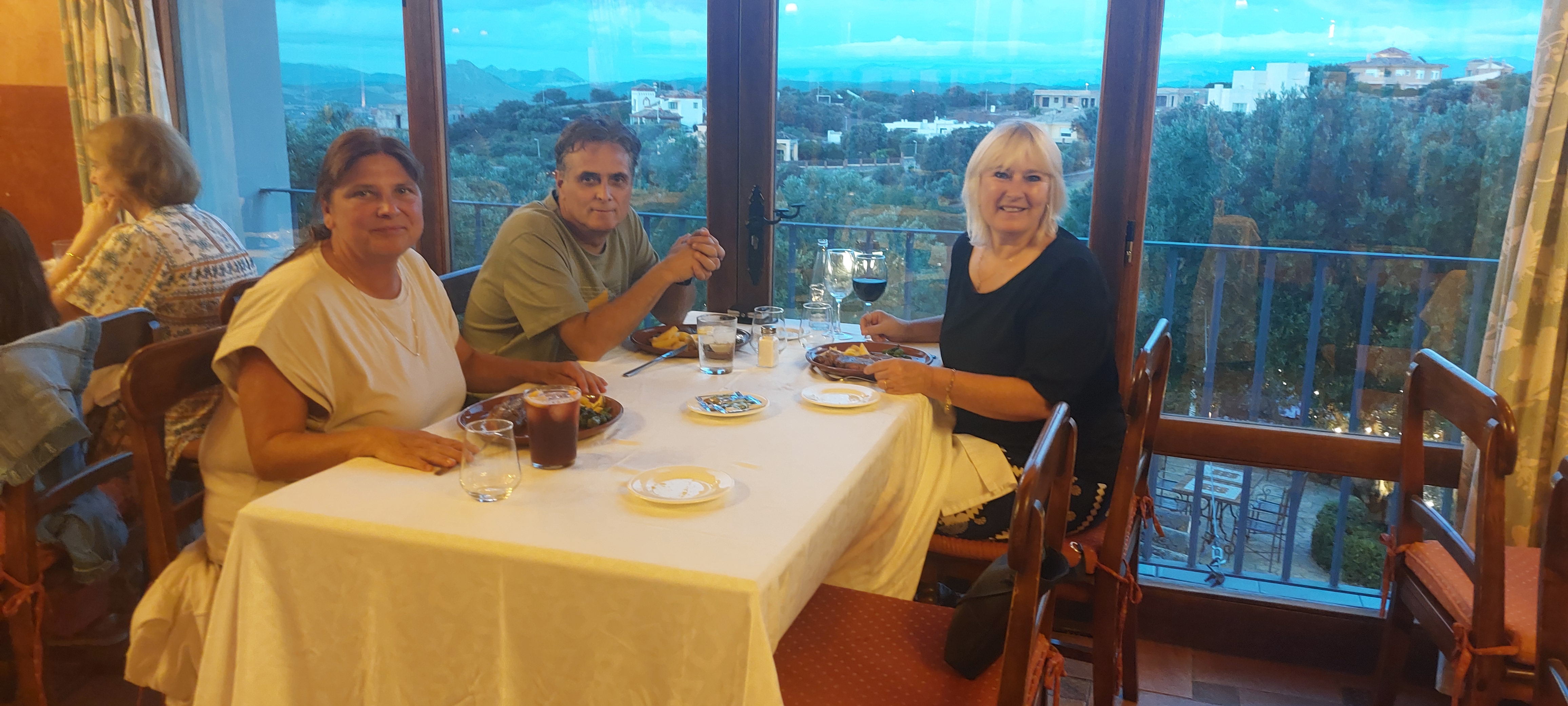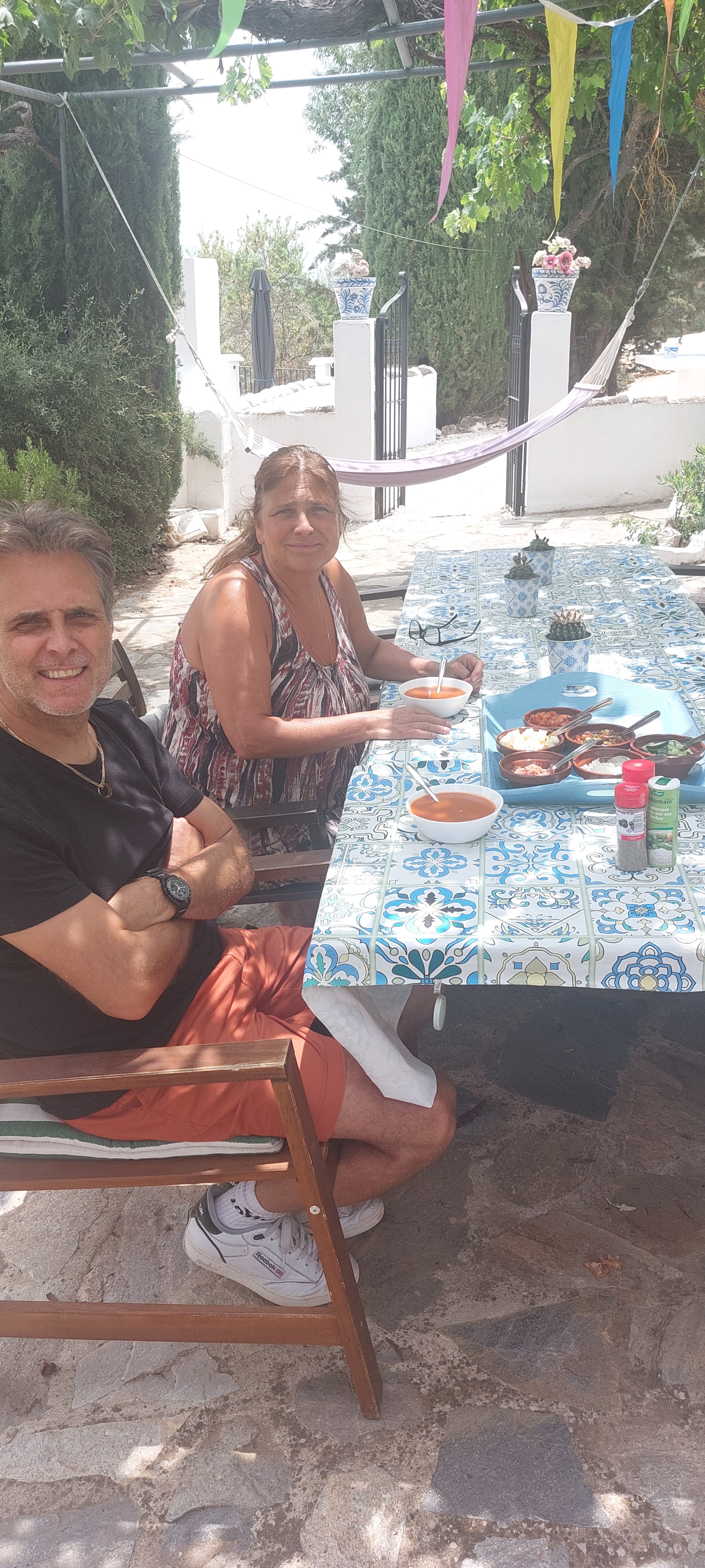 Tussen de middag een gezonde gazpacho gegeten en savonds werd Lesley wederom verrast door zijn zus want ze had een mooi restaurant uitgekozen om te gaan eten. Een half uur bij ons vandaan ligt de Anteqera golf baan en daar zit ook een uitstekend restaurant bij.
