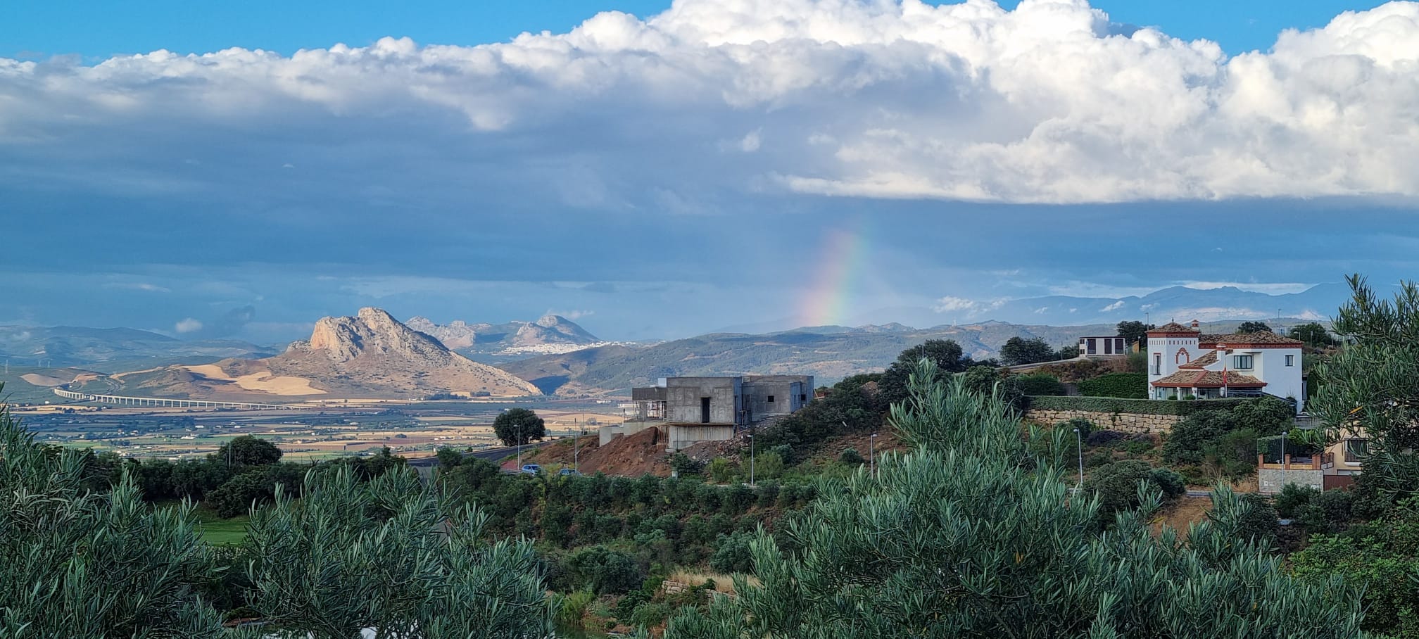 In het hart van Andalusië zie je steeds meer een eenzijdig landschap ontstaan. Waar je heel vroeger nog wijnranken zag en een paar jaar geleden nog veel akkerbouw en veeteelt wordt het inmiddels steeds meer ingeruild voor de olijven teelt. Her en der zie je een boer nog wel eens wat anders proberen zoals de boer schuin achter ons met zijn pistache velden maar over het algemeen zijn het olijven, olijven, olijven.