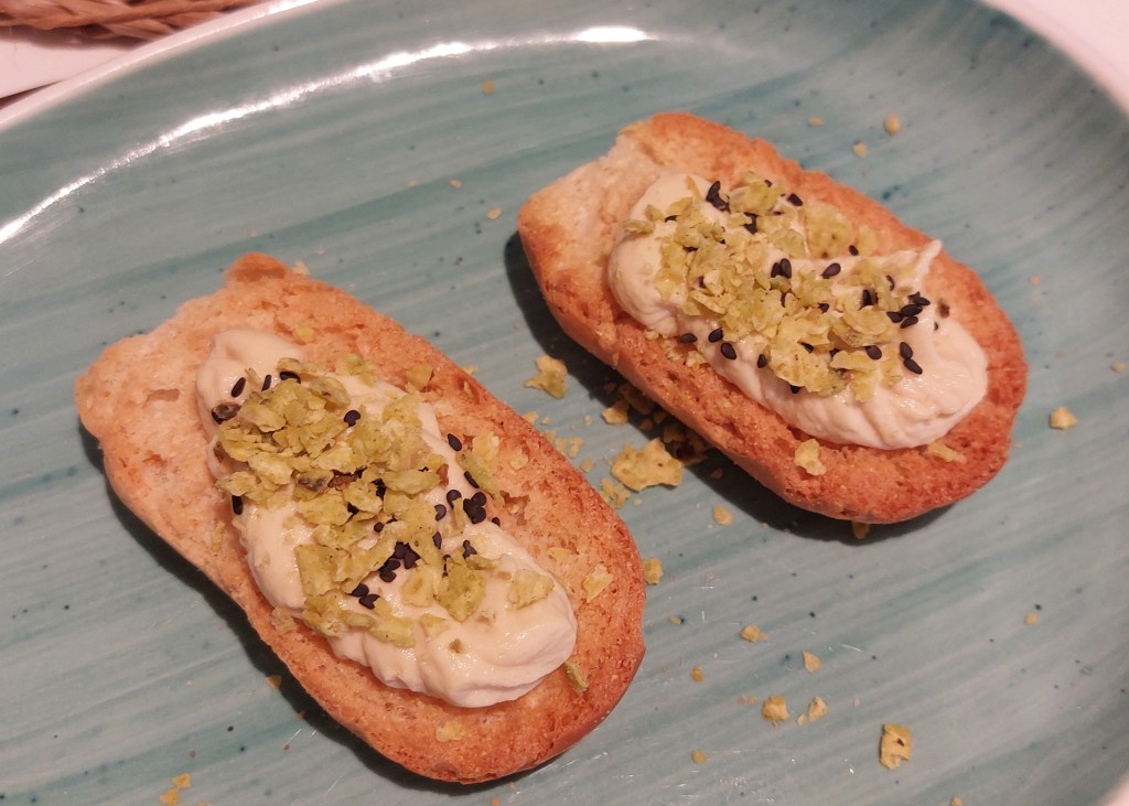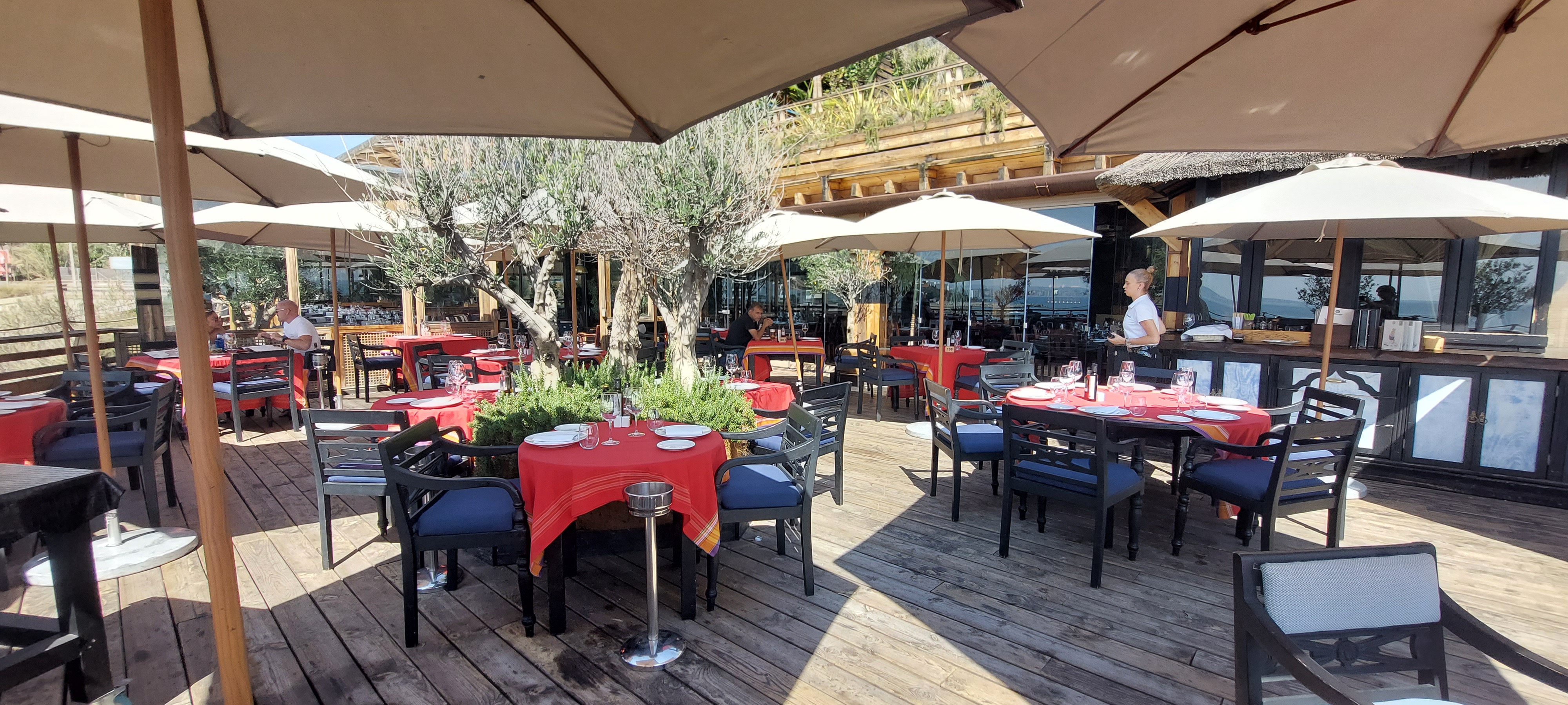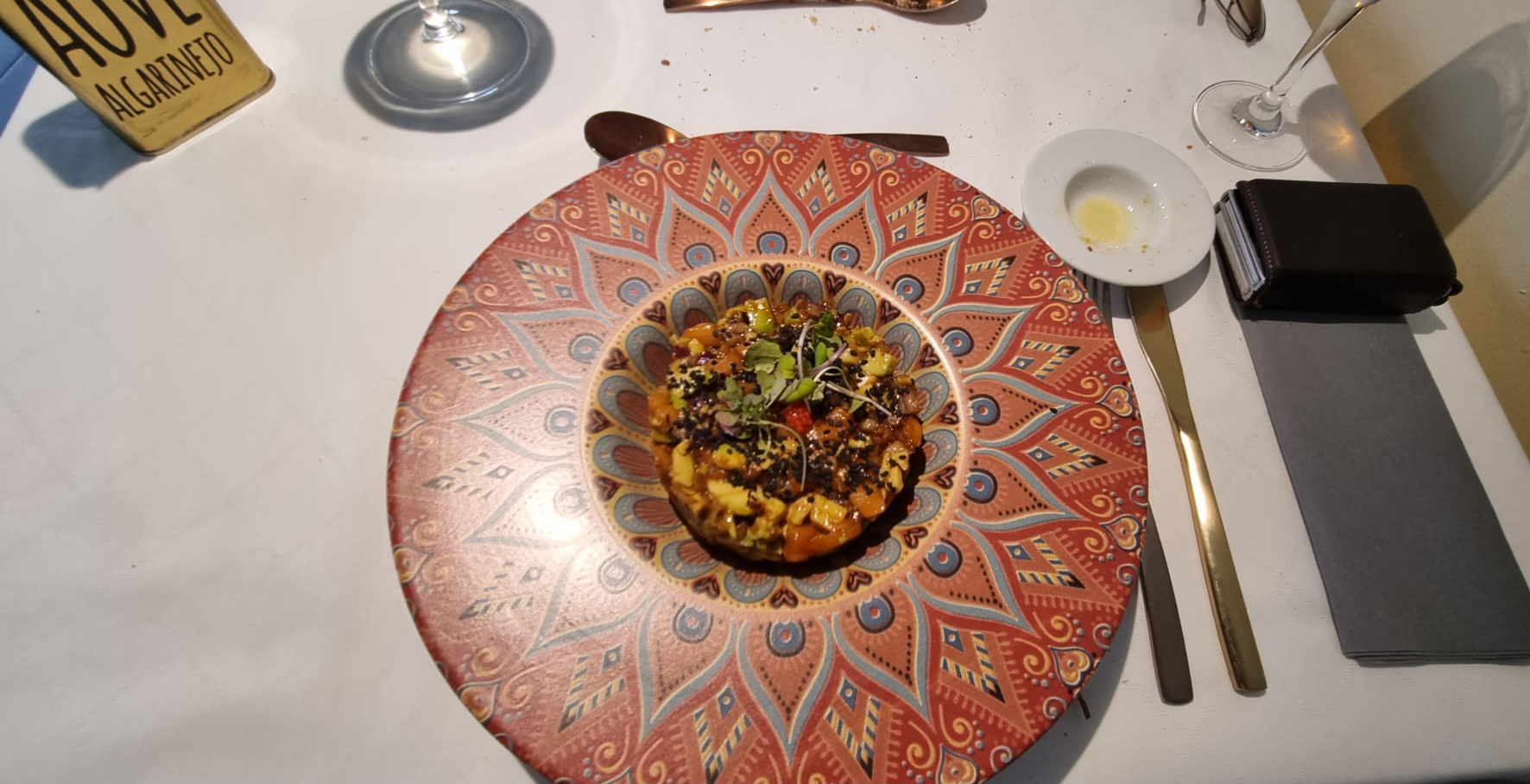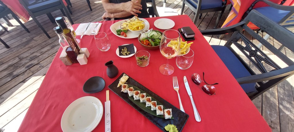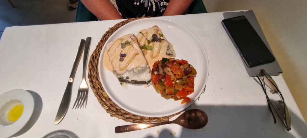 Zo gezegd zo gedaan we bestelden eerst een tonijn tomaten salade en vroegen of het volgende gerecht na ongeveer een half uur pas gereserveerd kon worden. Pap nam de hamburger en mam en ik de gamba’s pilpil.