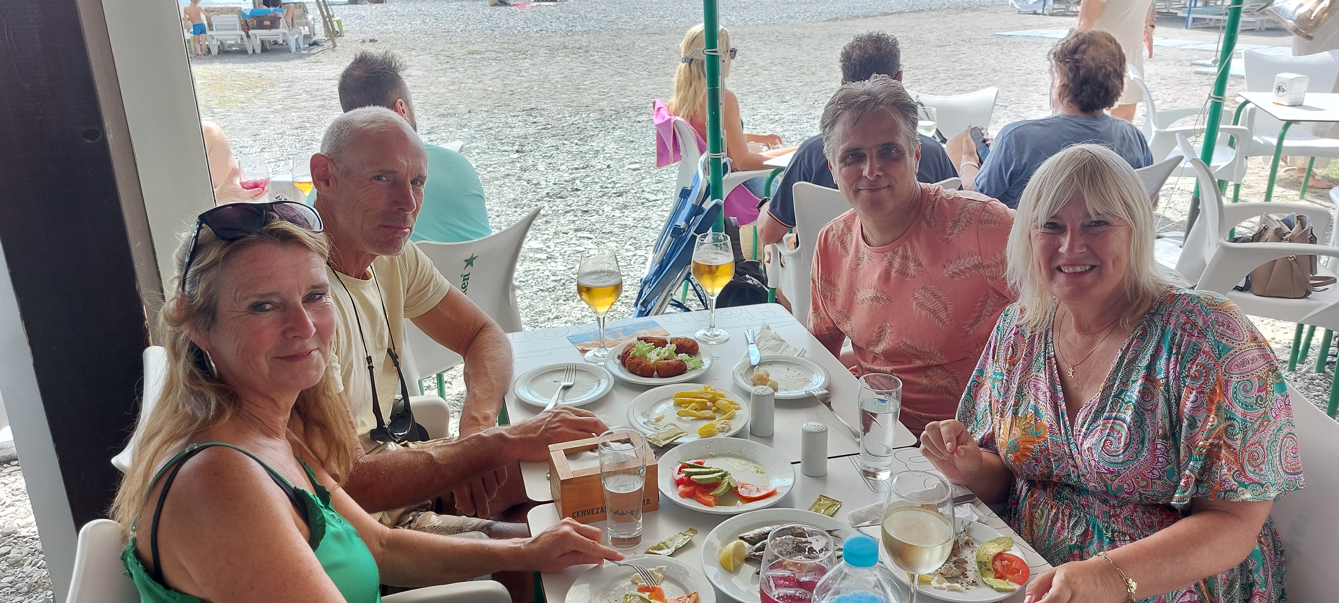 Lesley en Ramon bestelden ook nog een hamburger en zo zaten we gezellig om 11 uur op het terras vollop te kletsen, die Spanjaarden zullen wel gedacht hebben wat gebeurt daar allemaal maar aan onze blije gezichten te zien konden ze vast aflezen dat het iets heel leuks was.