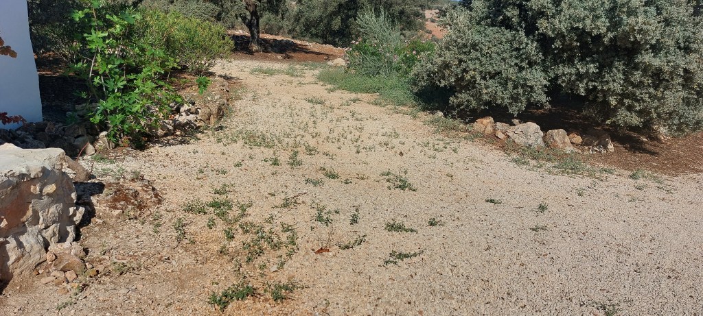 Vorige keer had ik een mooie steen met kristallen erop gevonden op ons land, wie weet met meer graven tussen de rotsen vinden we wel een echte waardevolle edelsteen want dat hebben we wel nodig met al mijn ideeën, of een geldboompje ipv vijgen boom haha
