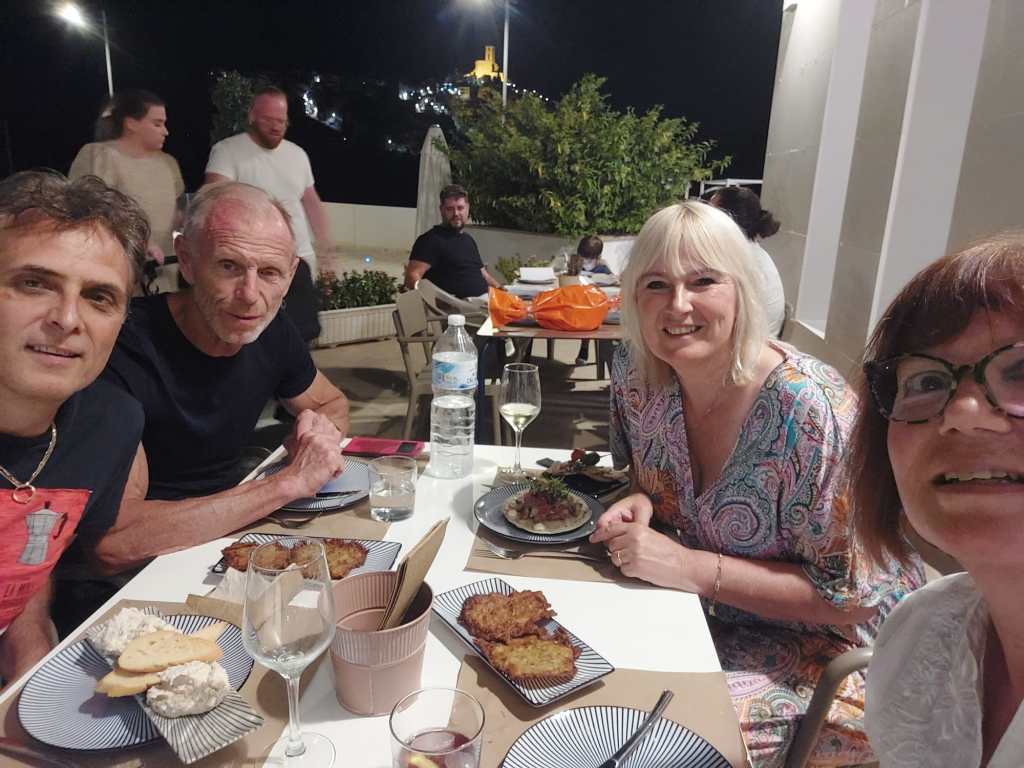 Om half 9 hadden we afgesproken met Rob en Ibolja van Cortijo del Sueño. Het was denk wel een jaar geleden dat we elkaar voor het laatst gezien hadden, leuk om gezellig bij te kletsen onder het genot van een tapa en een drankje.