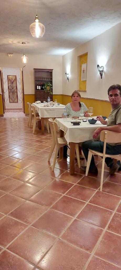 We hadden om 20.30 uur een reservering staan bij een nieuw restaurant in Villanueva del Trabuco. Helemaal nieuw is het niet want het was eerst af en toe in gebruik door German de eigenaar van Molino Jabonero. German verzorgd voor ons, onze vrienden en onze gasten regelmatig olijfolie tastings en rondleidingen soms ook incl lunch. Nu heeft hij zijn restaurant verpacht aan een jong Nederlands stel. Thomas en Fleur (en haar moeder) hadden het restaurant eerst gepimpt, de kleur rood is nu wit geworden en er zijn nieuwe stoeltjes en nieuwe tafellakens. Het ziet er gezellig uit nu. Vandaag is de opening en wij zijn erbij.