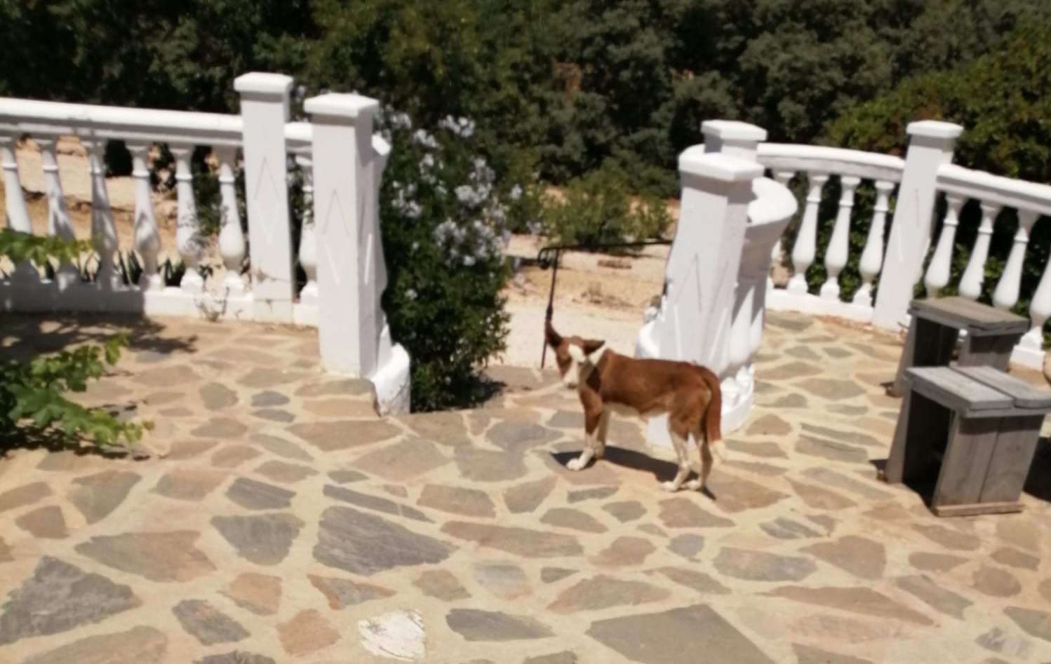 Er lopen regelmatig zwerfdiertjes om en rond de Hacienda. Katten redden zichzelf wel maar hondjes hebben het vaak moeilijk. Er is 1 hondje die we in april ook al hebben zien rond lopen en gelukkig leeft hij nog steeds, misschien drinkt hij wel water uit ons zwembad want hij komt weleens kort buurten. We zien hem regelmatig voor het hek bij de groene schuur liggen en aangezien ze daar ook honden houden denk ik dat de eigenaar dit hondje ook eten geeft, hij ziet er niet slecht uit. Als wij hem zien liggen bij de schuur geven we hem ook altijd wat. We hadden nog wat spaghetti over, nou en lekker dat hij het vond, zo heeft hij weer even genoeg koolhydraten.